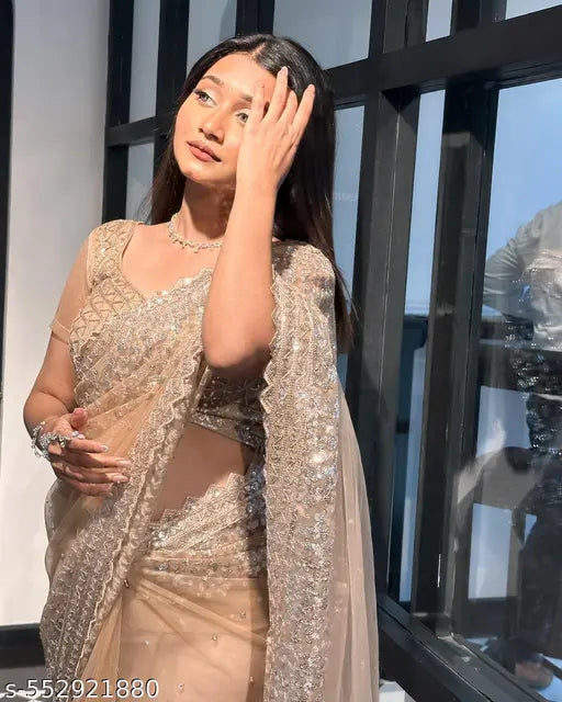 Women's Soft twill net Embroidery saree with twil net Blouse