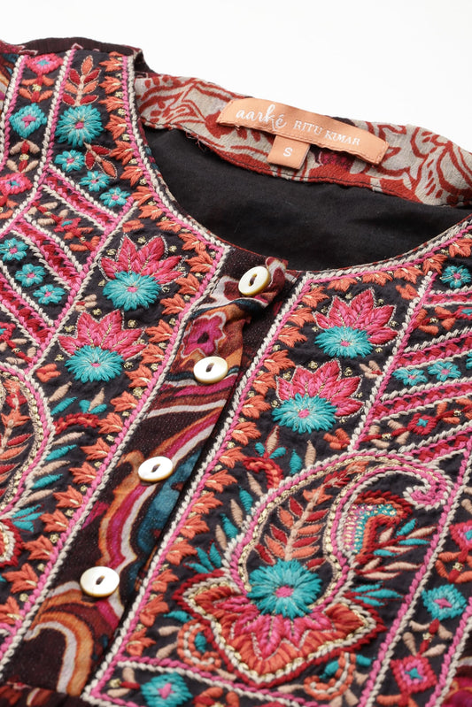 Ritu Kumar Navy Floral Print Chanderi Kurta With Palazzo And Dupatta