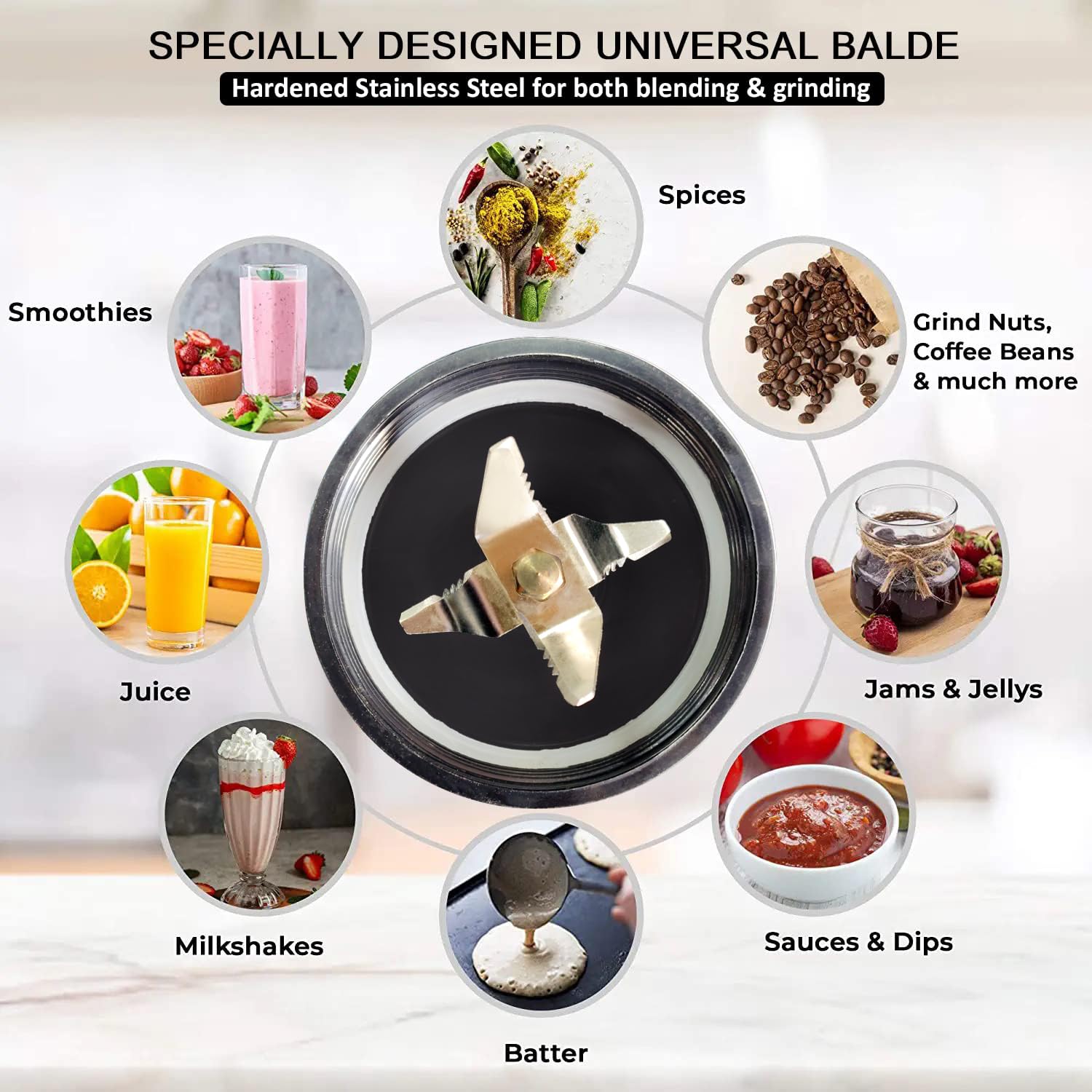 - ✅STAINLESS STEEL JARS AND BLADES: It Comes Equipped With High - Quality Stainless Steel Jars And Blades. Stainless Steel Fine Blades For Best Chopping, Grinding And Juicing. They Can Perfectly Blend Even The Harder Food Stuffs Very Easily. It is Hygienic and Easy to Clean as Well.