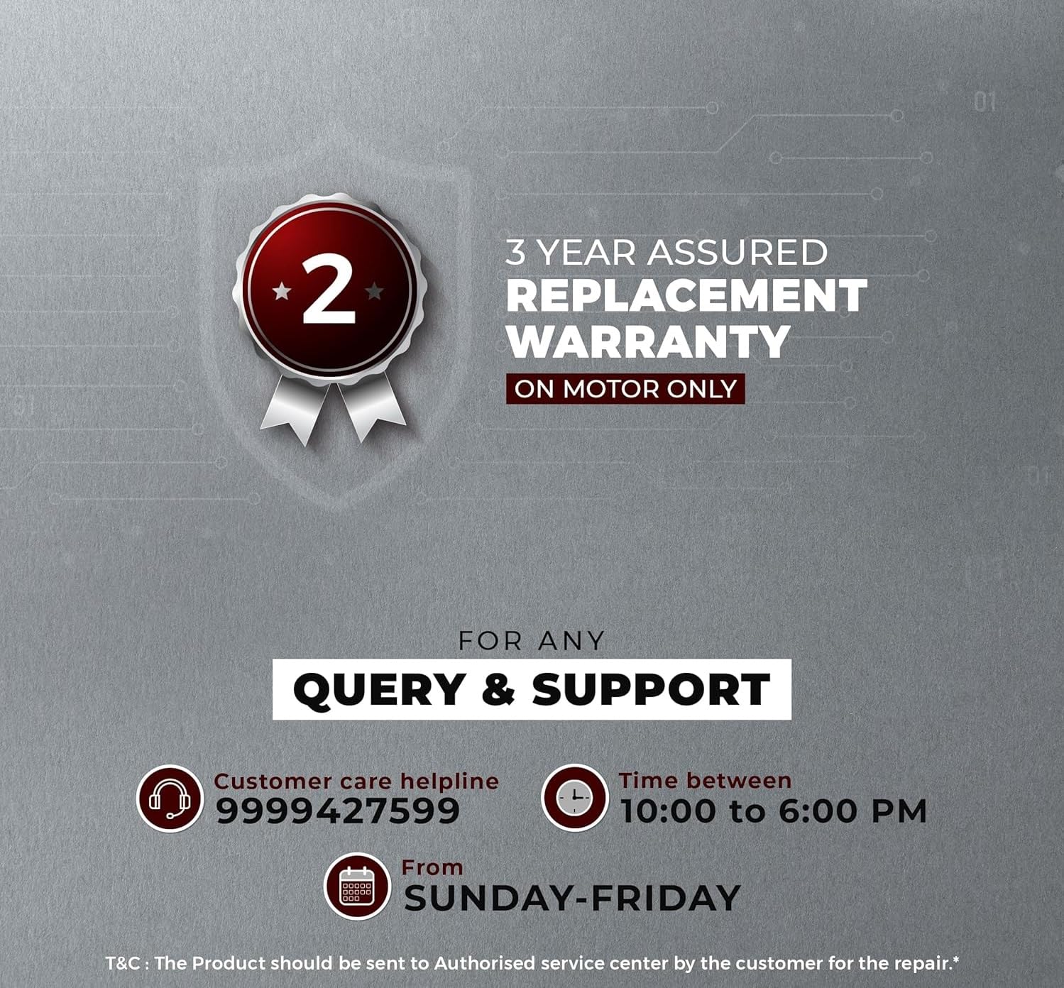 - ✅WARRANTY TYPE : Product installation to be done by the customer Himself. and Customer will send the product to a service center for repair. The product will be repaired in only service center.