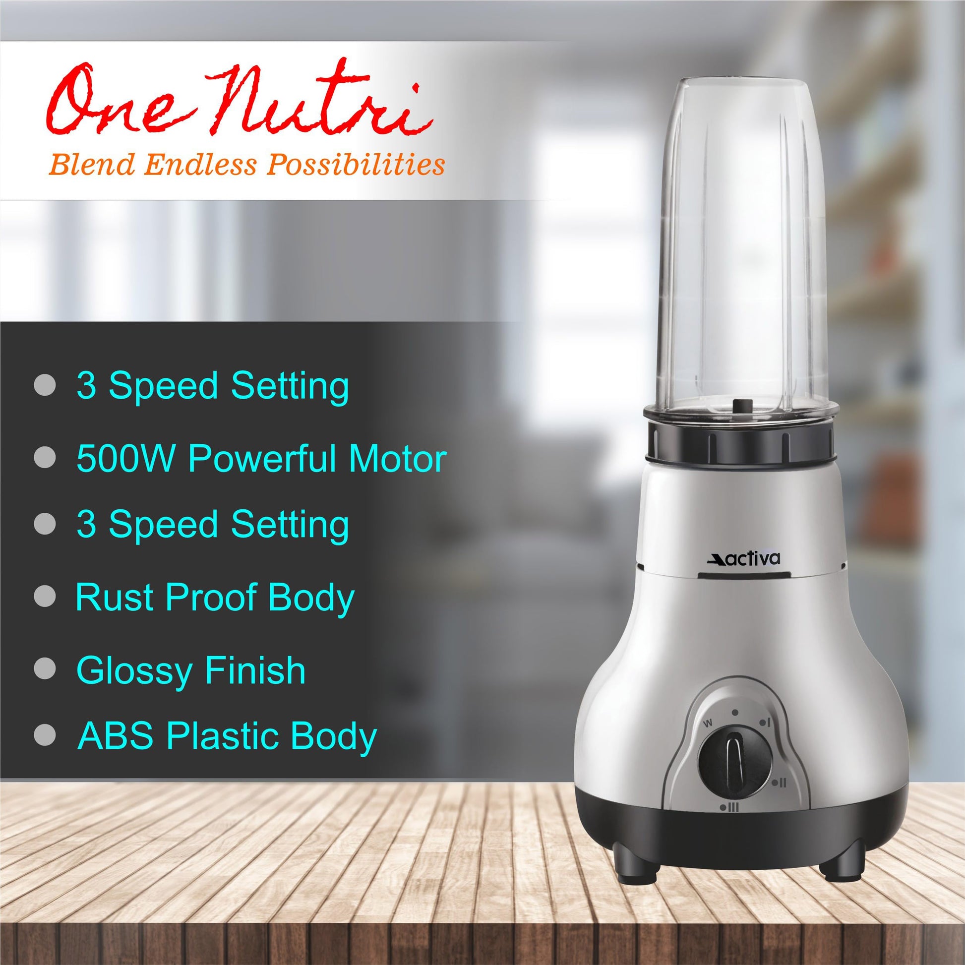ACTIVA Easy Mix Nutri 2 Jar Mixer Grinder for Smoothies, Chutney & Shakes, Long Lasting Shock Proof Abs Body, Powerful 500 Watt Heavy Duty Motor With Nano Grinding Technology, 2 Years warranty-Black