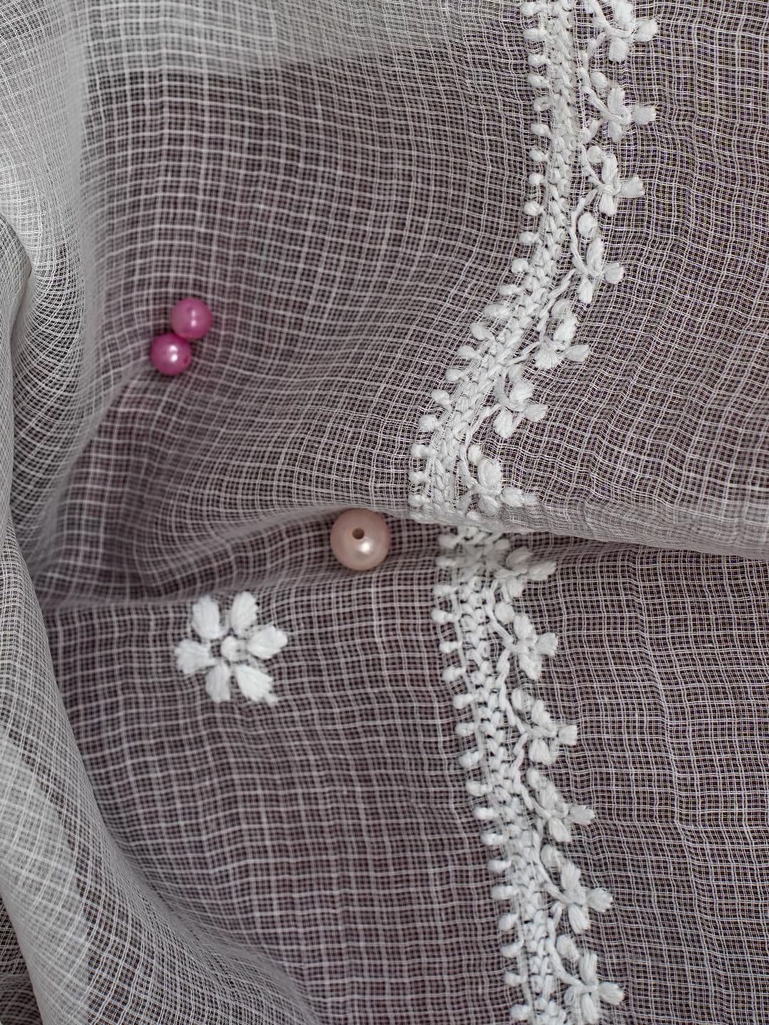 - Embroidery: Bakhiya, Phanda & Ulti Bakhiya using White Cotton thread