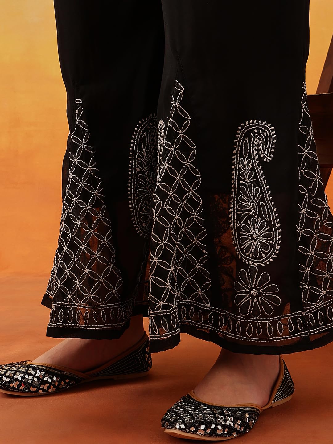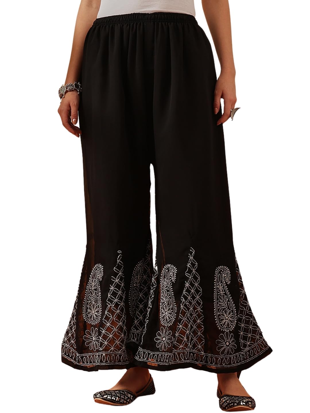 Ada Lucknowi Chikankari Hand Embroidered Georgette Flared Palazzo for Women A711165