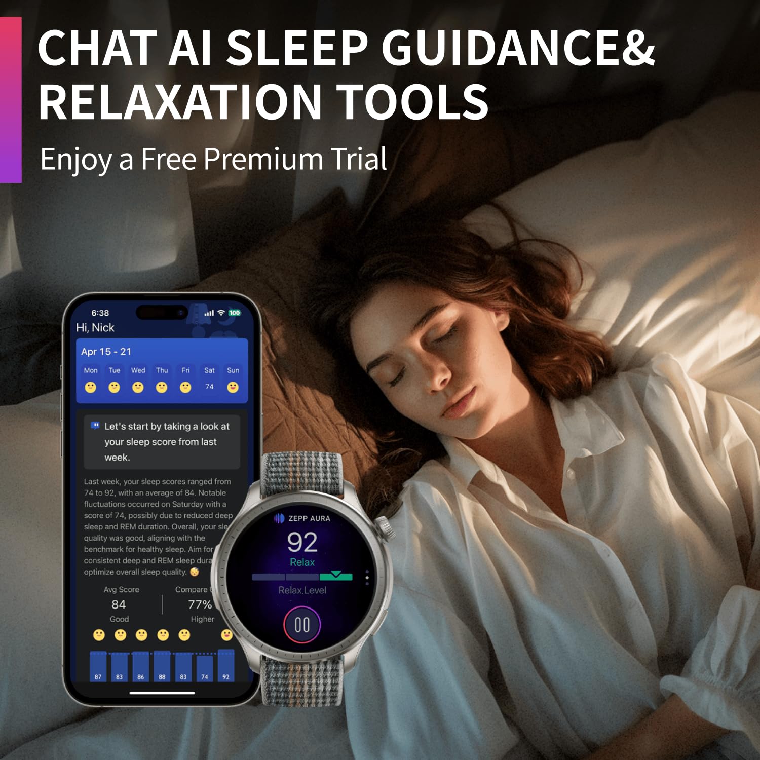 - Personalized Chat AI Fitness Coaching: Zepp Coach harnesses the power of AI to generate workout plans that are tailored to you, and helps you balance activity and recovery by letting you know when to step things up, or when to take a rest. Got fitness questions? Try out the innovative Zepp Coach AI Chatbot feature in the Zepp App, and get the answers you need from your very own AI personal trainer. The Amazfit Balance is much more than just a fitness tracker.