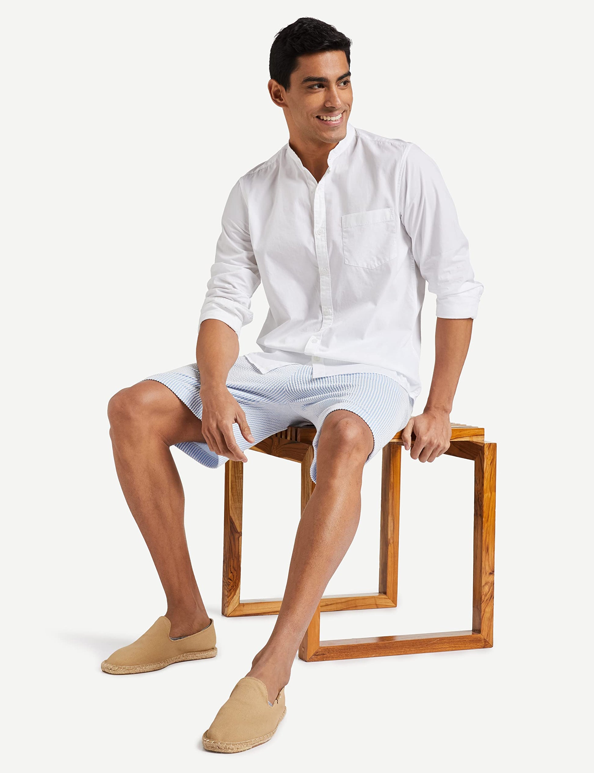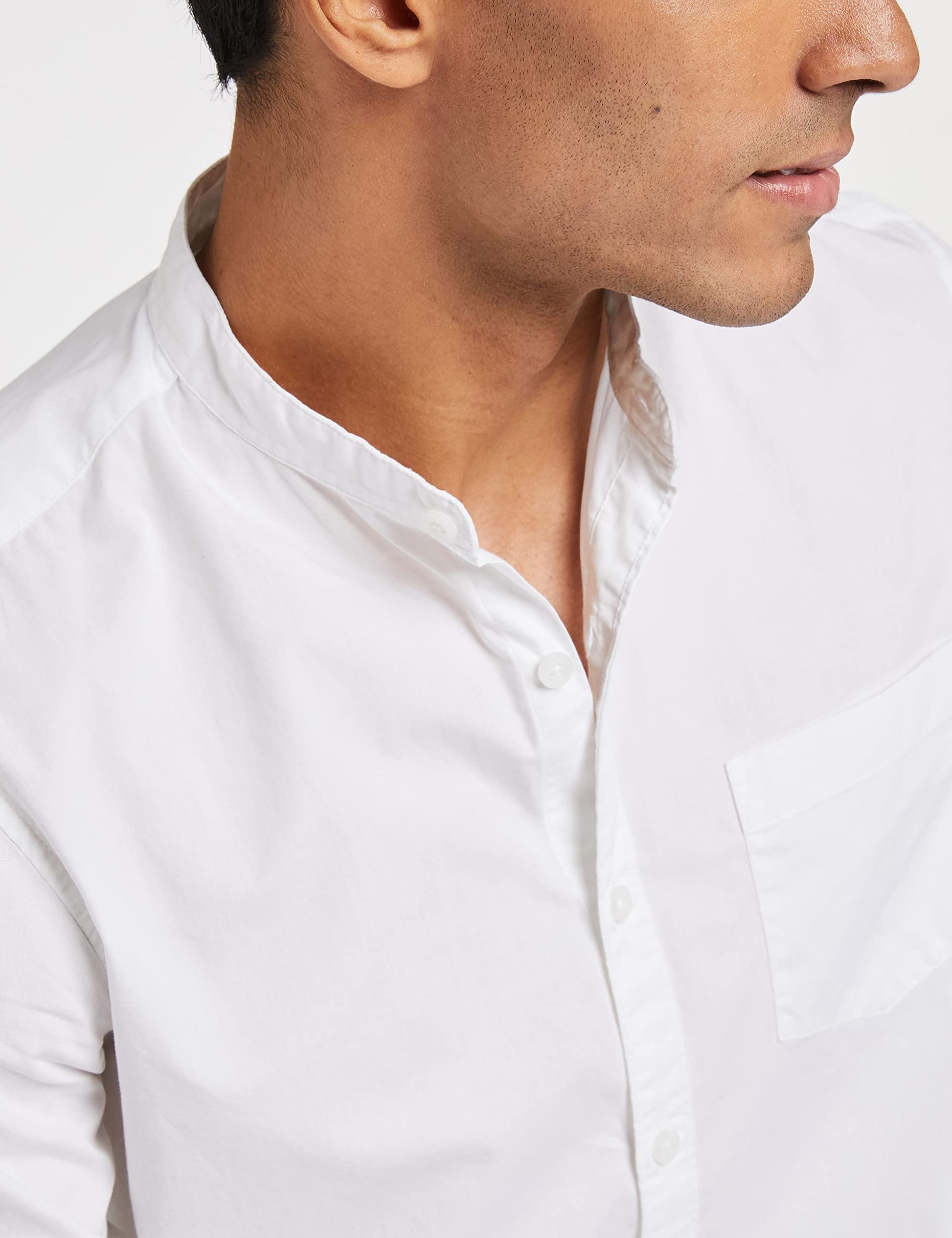 Amazon Brand - Symbol Men's Cotton Shirt | Chinese Collar | Casual | Plain | Full Sleeve | Summer - Regular Fit (Available In Plus Size, White_M)