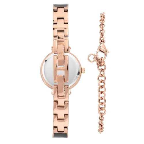 Anne Klein Women's Genuine Diamond Dial Rose Gold-Tone with Bracelet Set, Rose Gold/Black