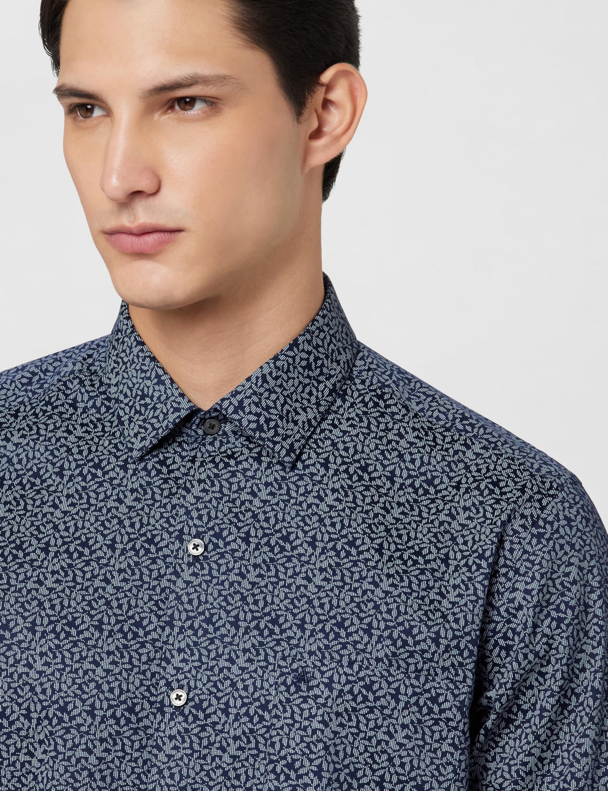 Arrow Men's Cotton Leaves Slim Fit Shirt (ARAEOSH1719_Navy, 40