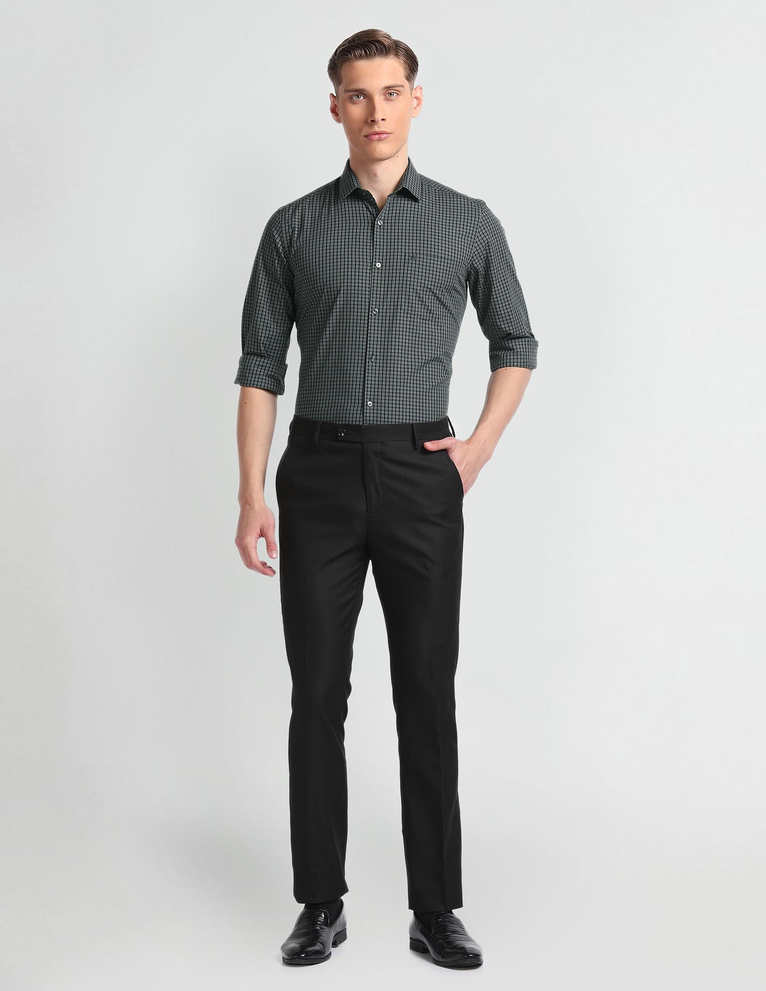 Discover sophistication that sets you apart with this checkered dark-grey shirt by Arrow. Crafted from lightweight cotton fabric, it ensures around-the-clock comfort. Moreover, the Manhattan slim fit of this Arrow shirt for men flatters your form without feeling constricting. The cutaway collar of this shirt lends a classy appearance, while the long sleeves offer adaptability for day-to-night transitions. What’s more, the handy chest patch pocket adds to the overall functionality of this Arrow slim-fit shirt for men.