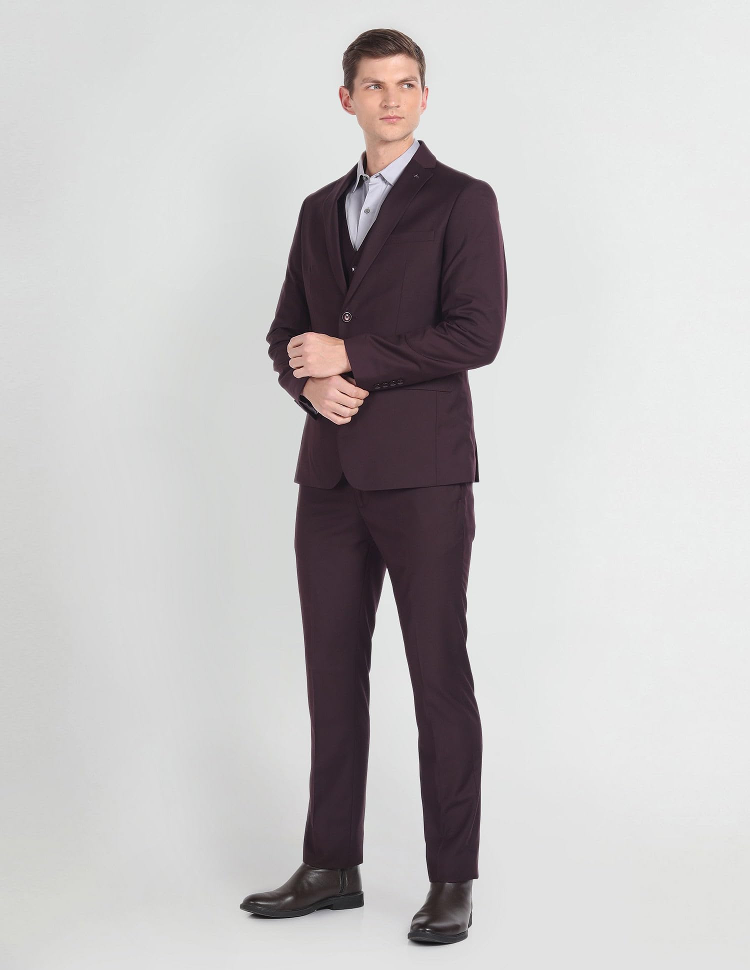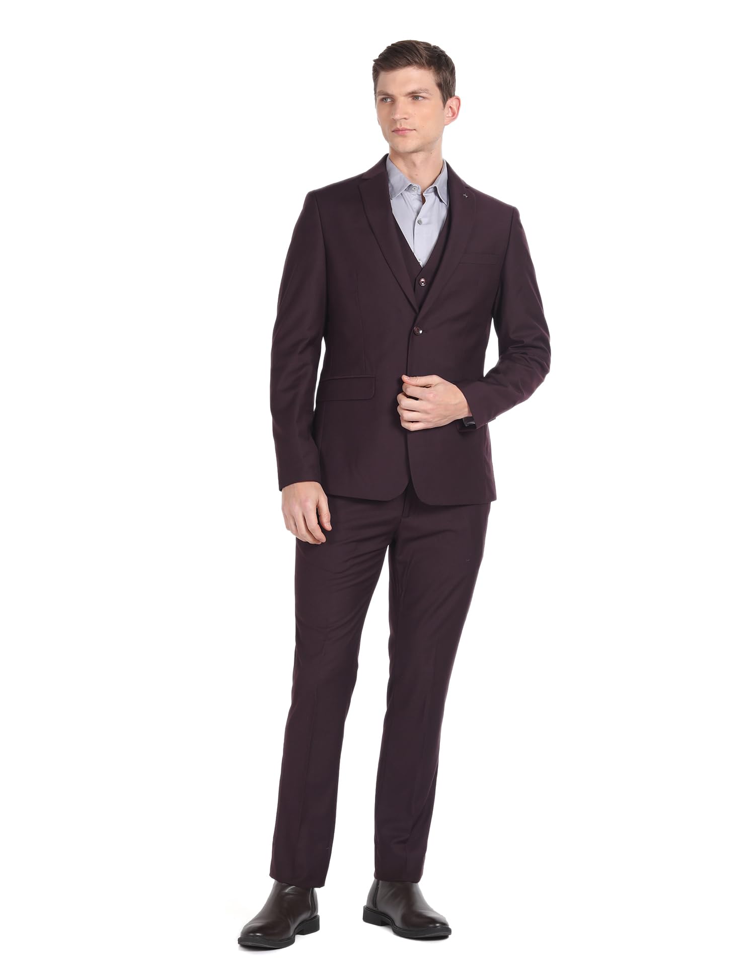 Arrow Men's Polyester Double Breasted Business Suit Pants Set (ARAGSU5582_Wine