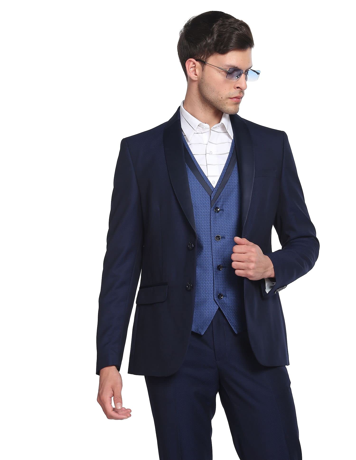 Arrow Men's Polyester Single Breasted Suits (ARAFSU5525_Blue