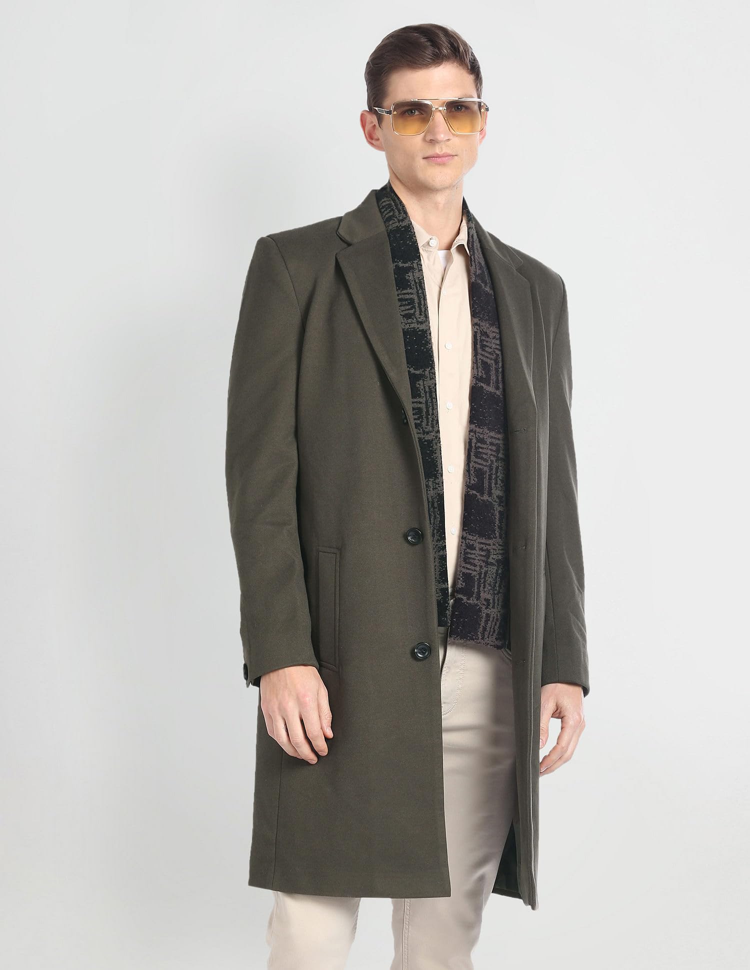 Arrow Men's Polyester Trench Standard Length Coat (ASAGJK4788_Olive, 2XL