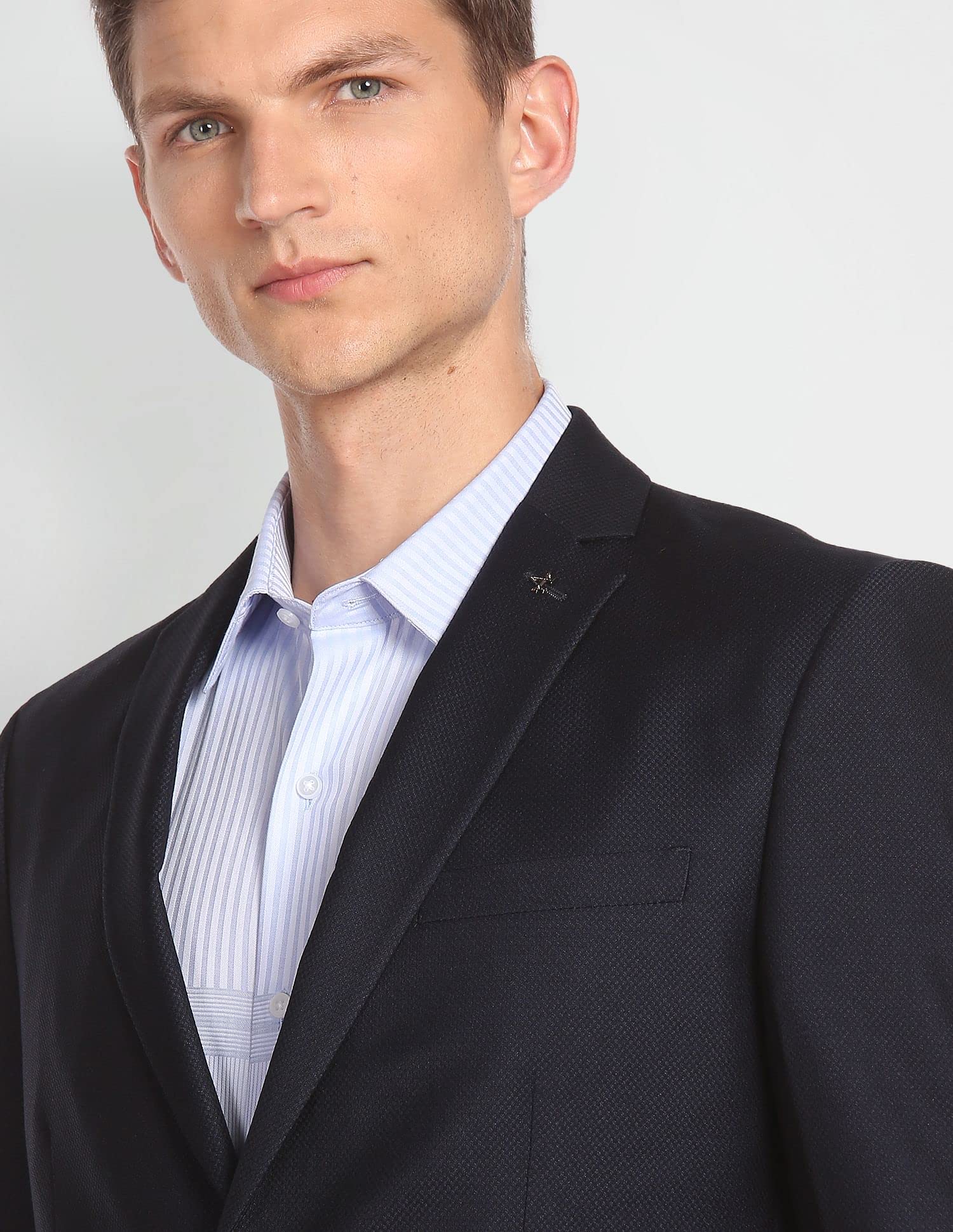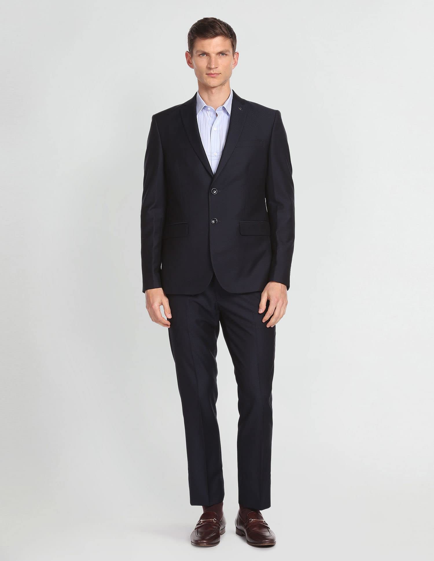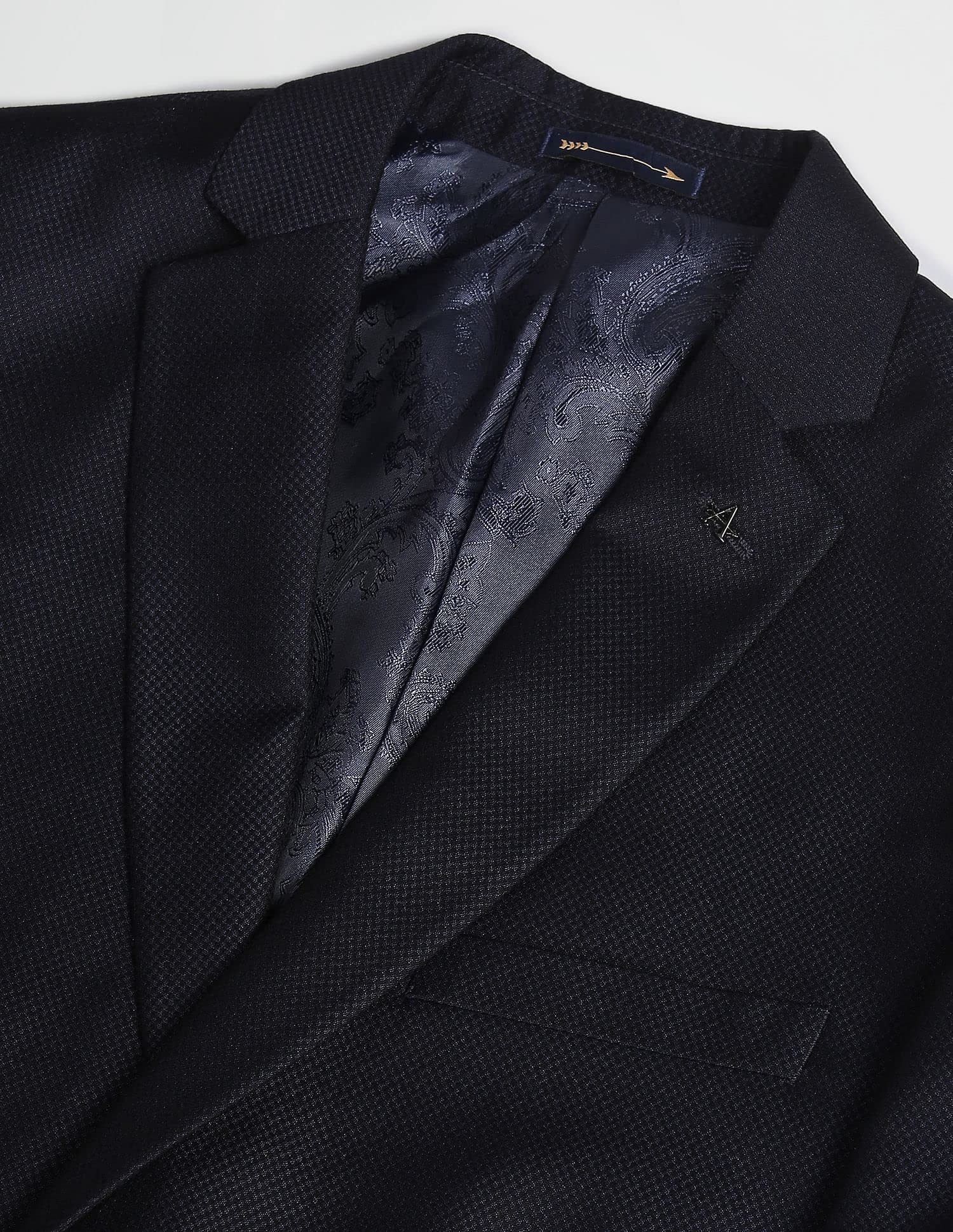 Arrow Men's Rayon Notch Lapel Collar Dobby Two Piece Suit (ARAFSU5514_Navy
