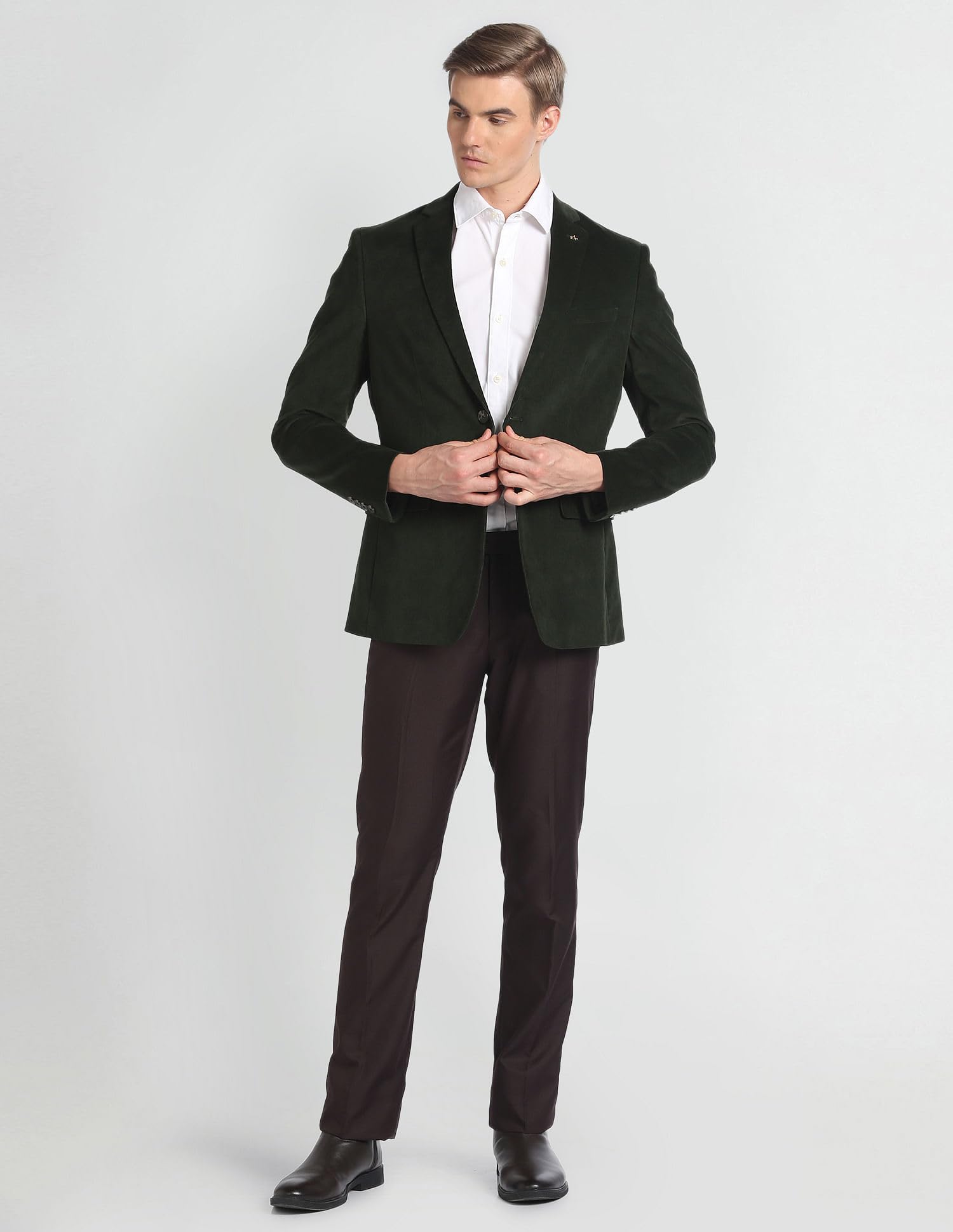 Cut to a slim fit with polyester blend fabric, this blazer will give character to your looks.