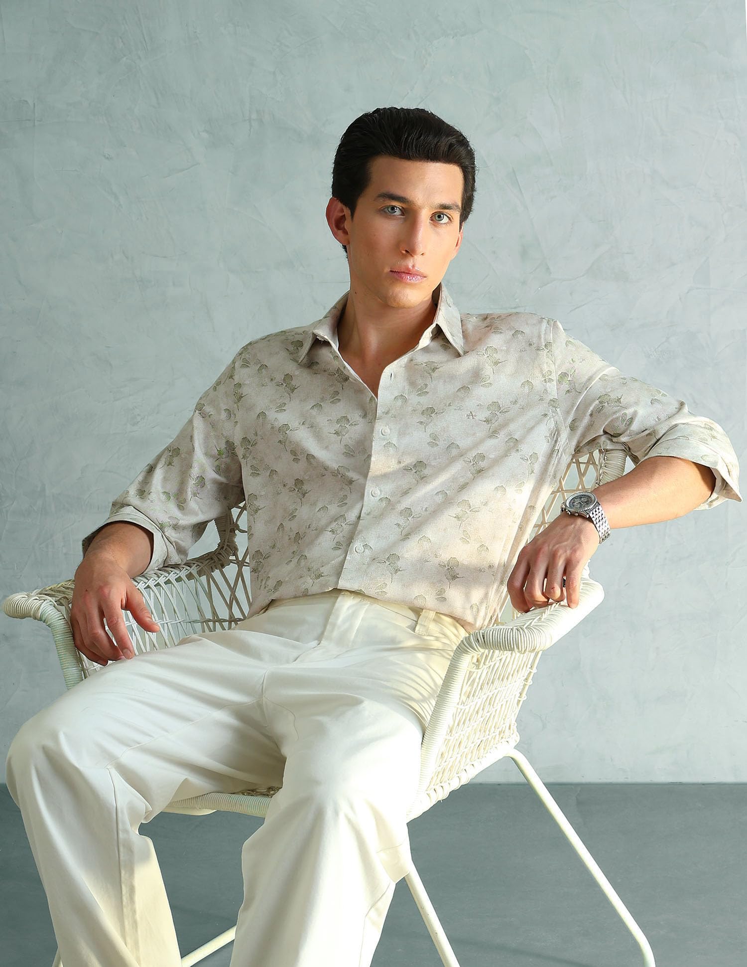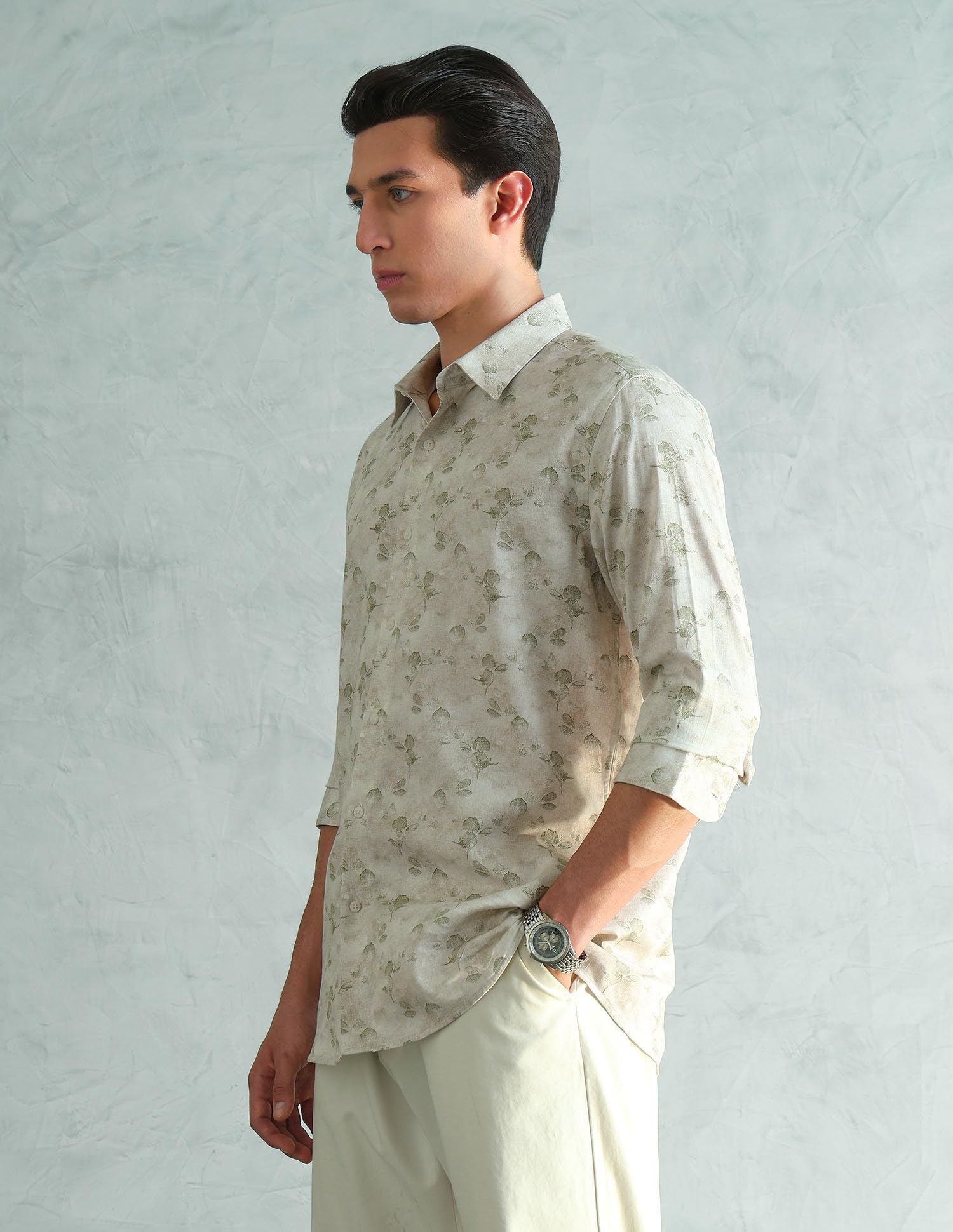 Arrow New York Men's Floral Slim Fit Shirt (ANAEOSH2912_Light Green