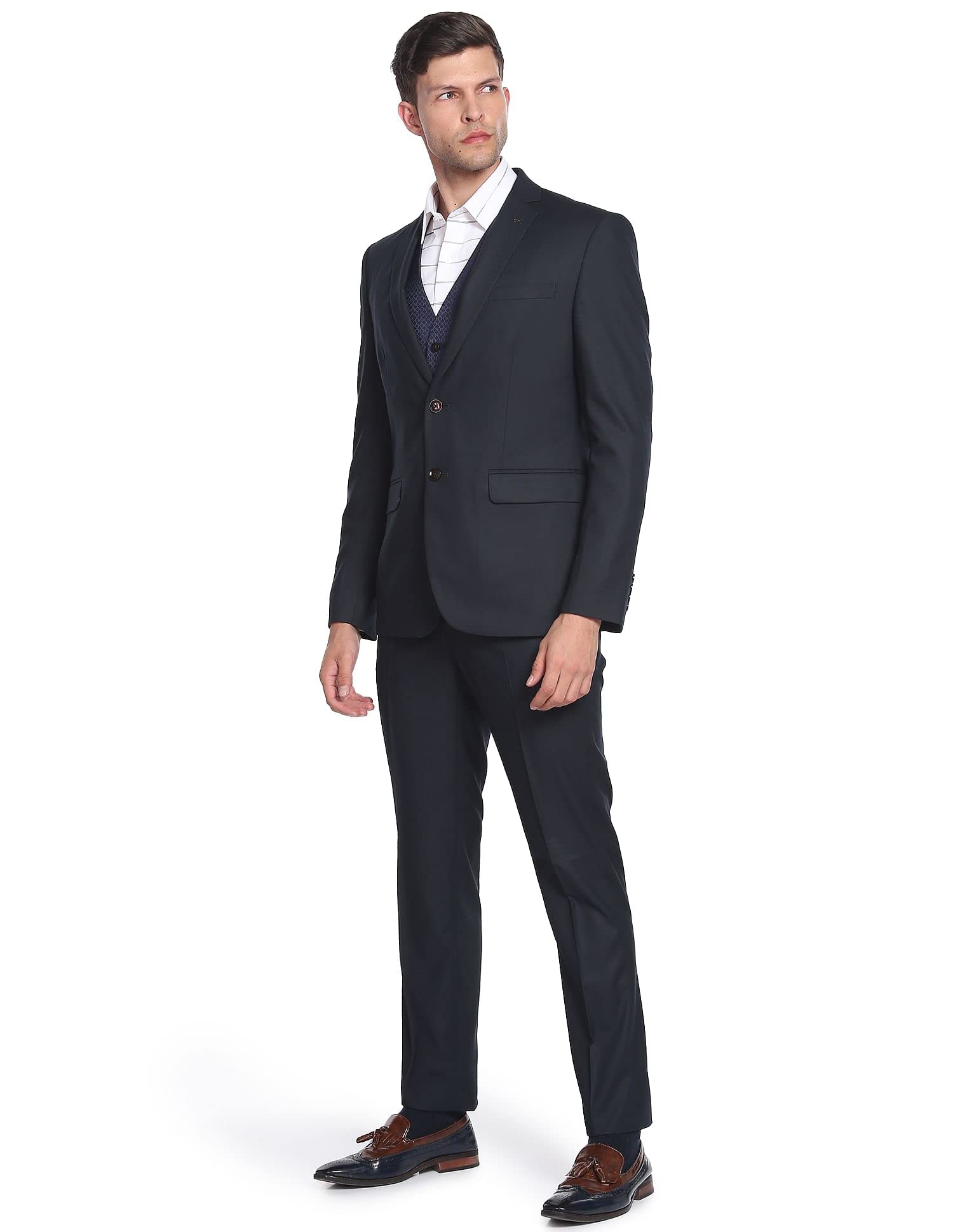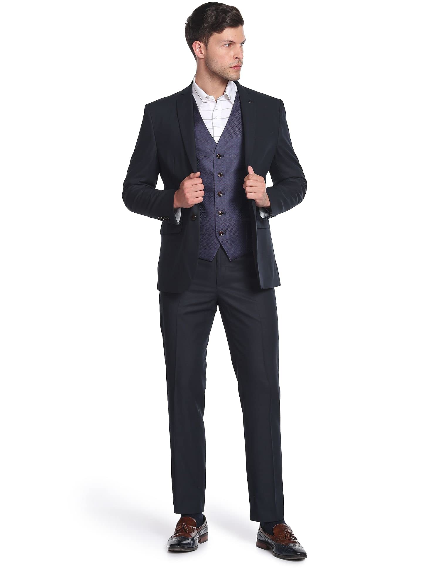 Arrow Reversible Waistcoat Self Design Three Piece Suit Green