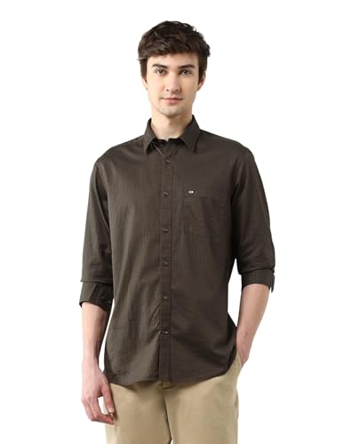 Arrow Sports Men's Geometric Regular Fit Shirt (ASAJSH1748_Dark Brown