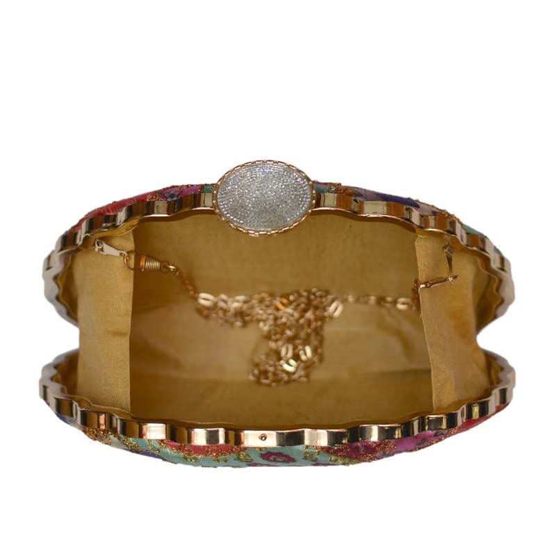 Artklim Floral With Embroidery Round Moon Clutch Bag for Women with Detachable Strap
