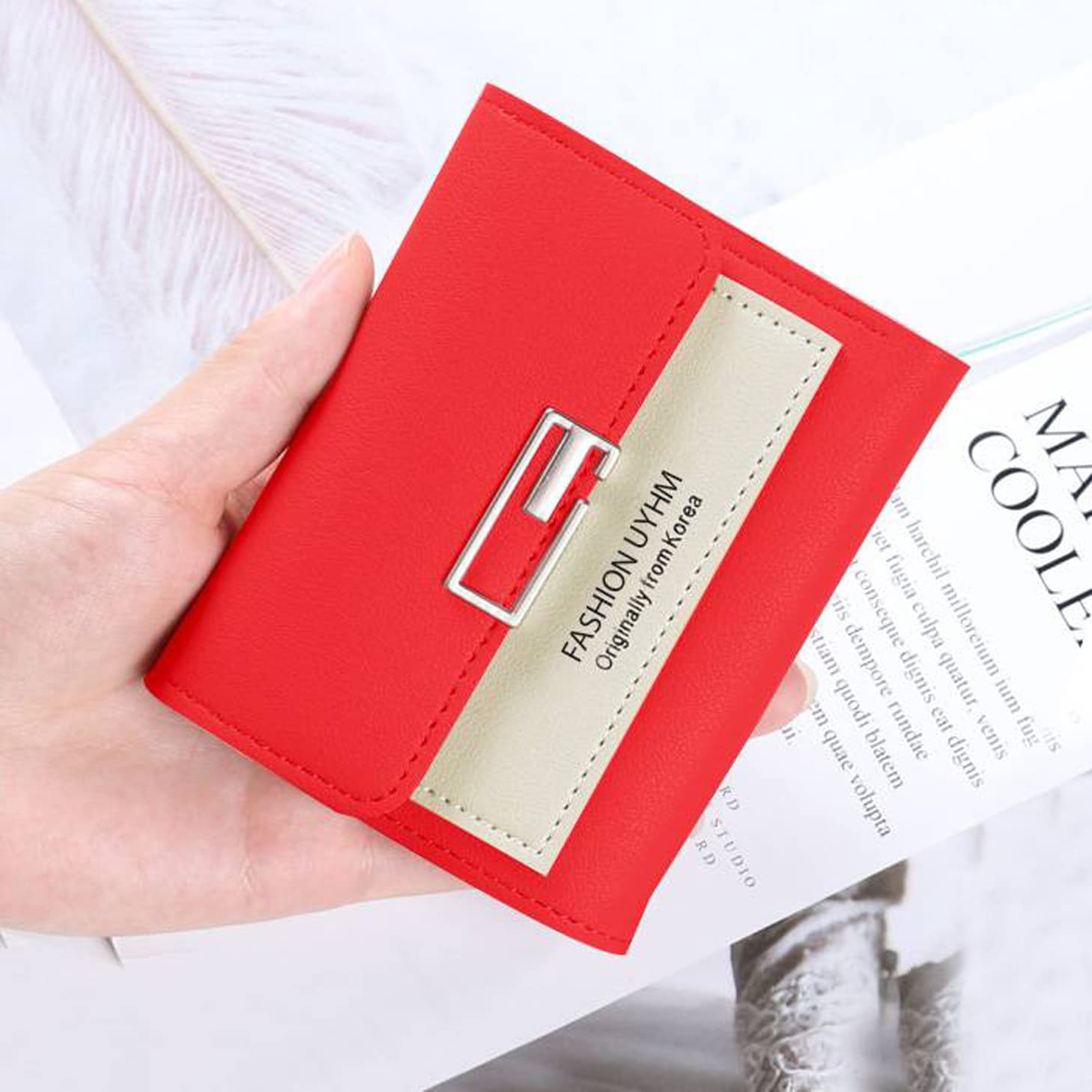 ARURA (LABEL) Women's Short Wallet Clutch Bag Three Fold Buckle Coin Purse Women's Handbag (Random Color)