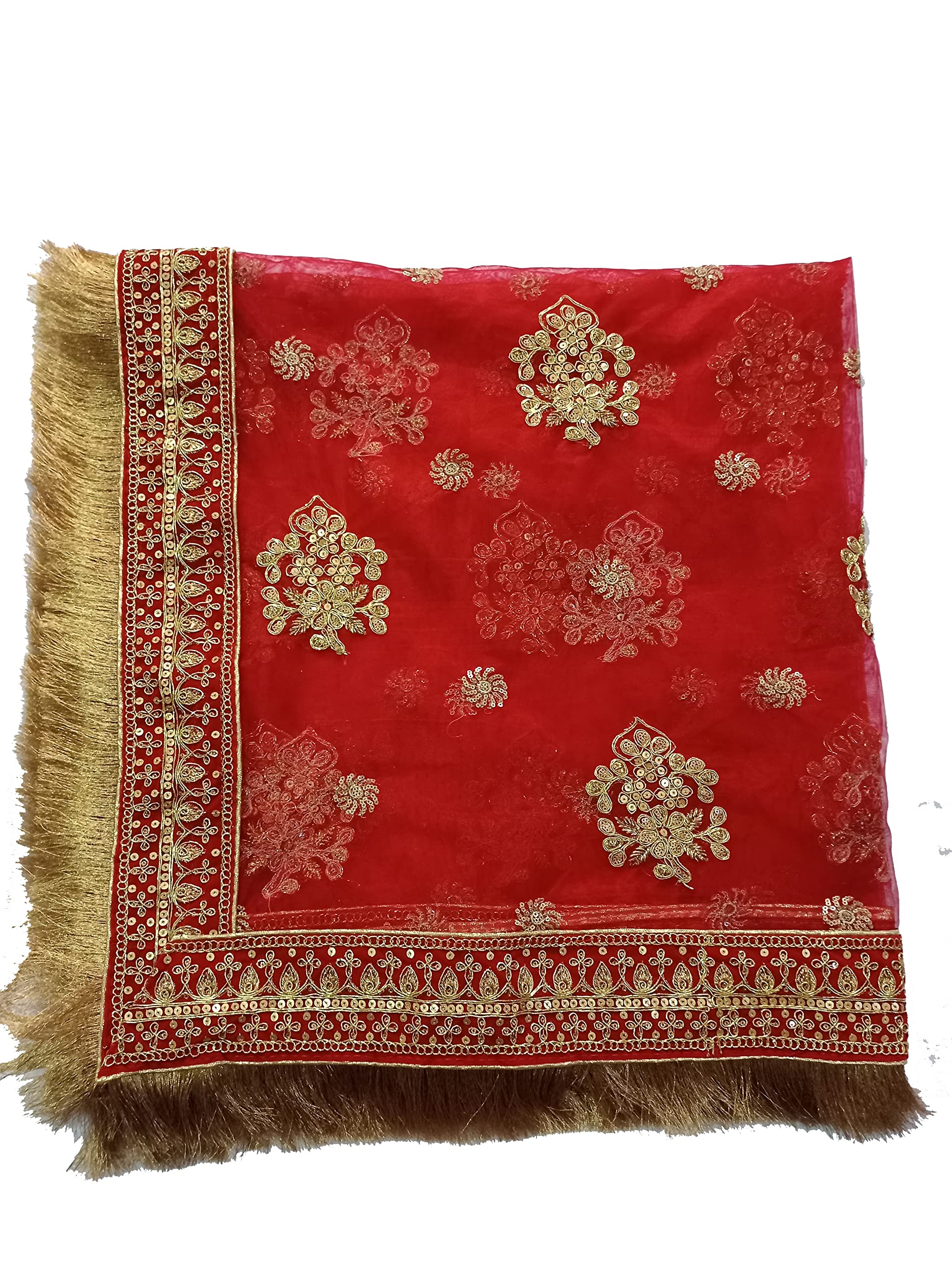 asha chunri house Women Net Red Bridal Dupatta With Border 2.05 Mtr