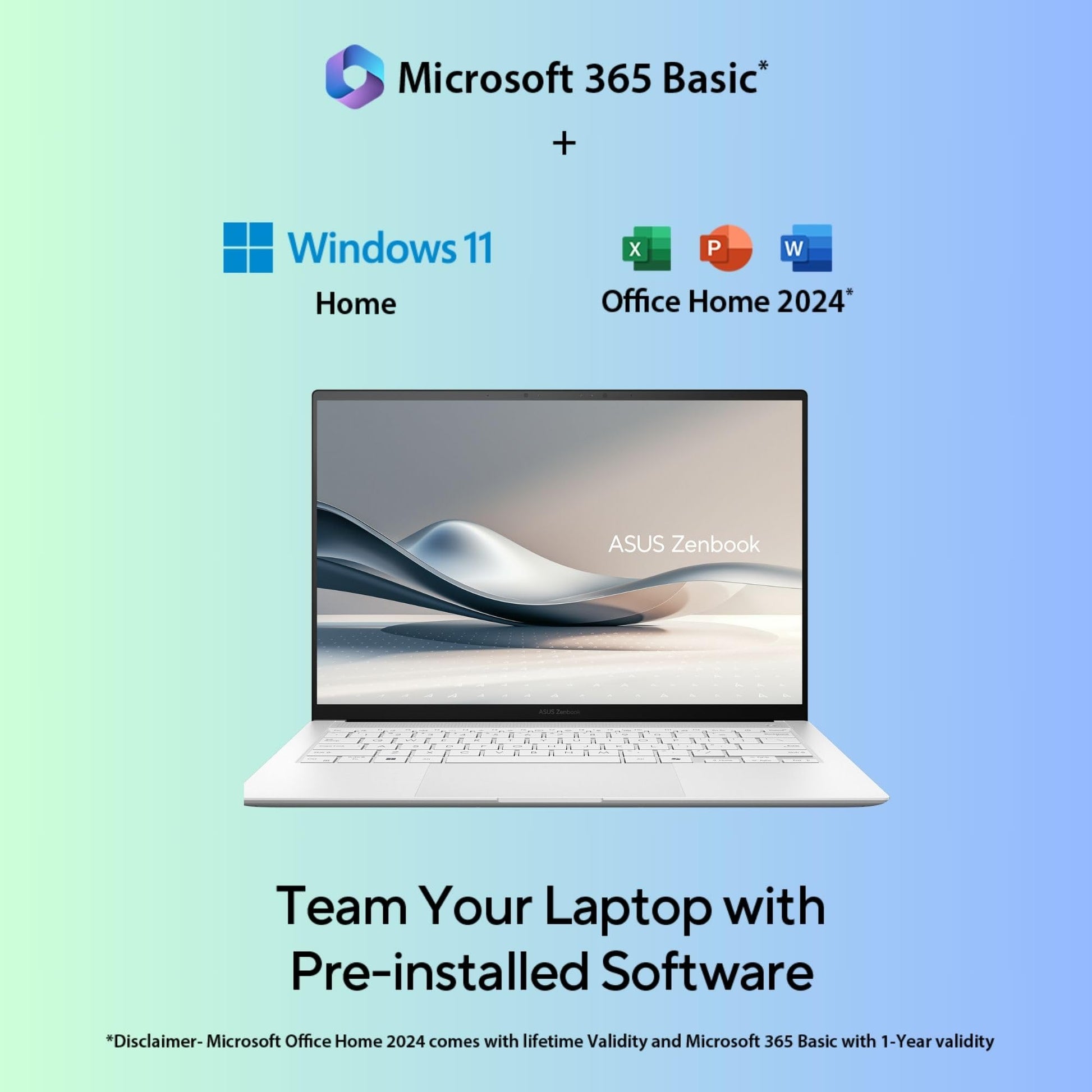 ASUS Zenbook S 14,Intel Core Ultra 7(Series 2),Copilot+ AI PC(Intel Arc iGPU/47TOPS/32GB/1TB/3K OLED Touchscreen/14/Windows 11/M365 Basic (1Year)*/Office Home 2024/White/1.20 kg) UX5406SA-PZ7762WS