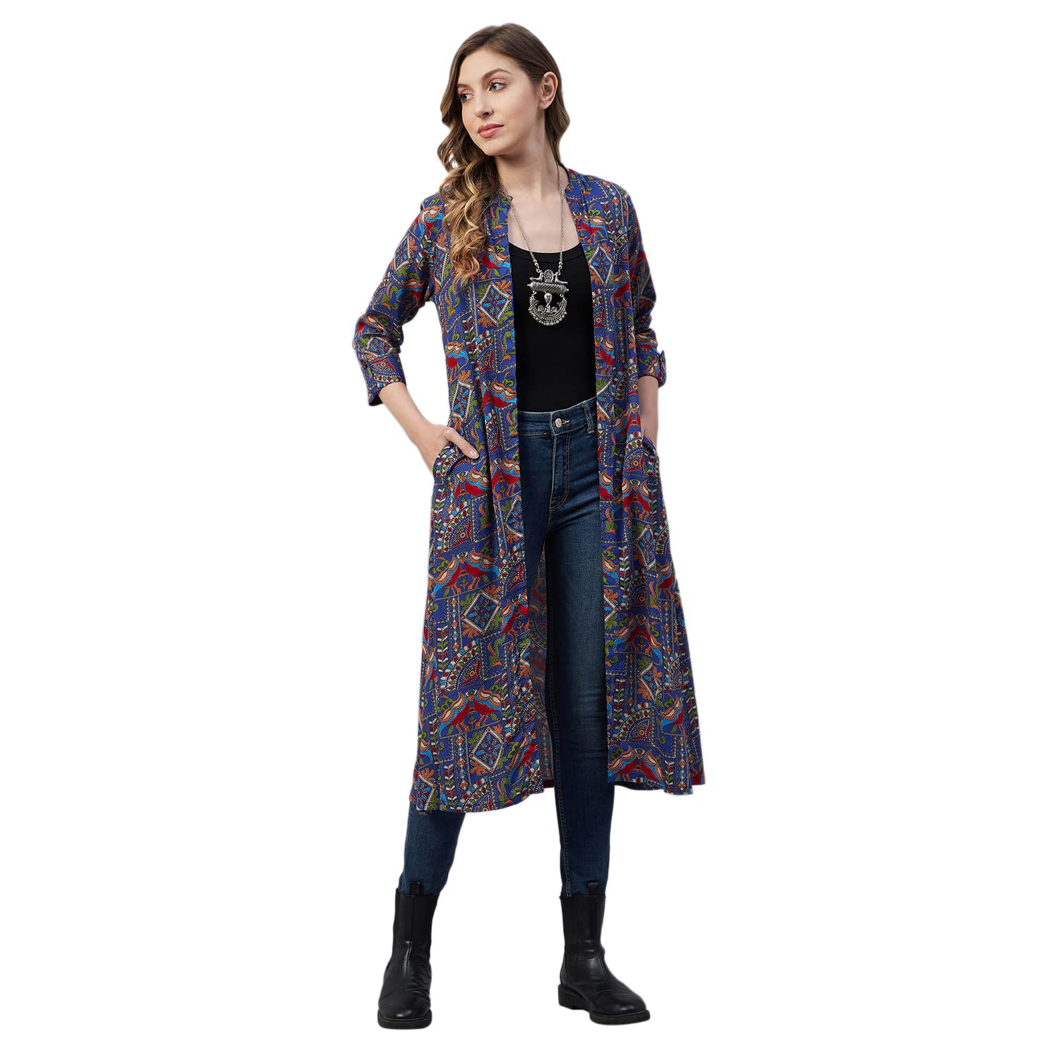 Azira Rayon Front Open Longline Printed Shrug For Women And Girl Red