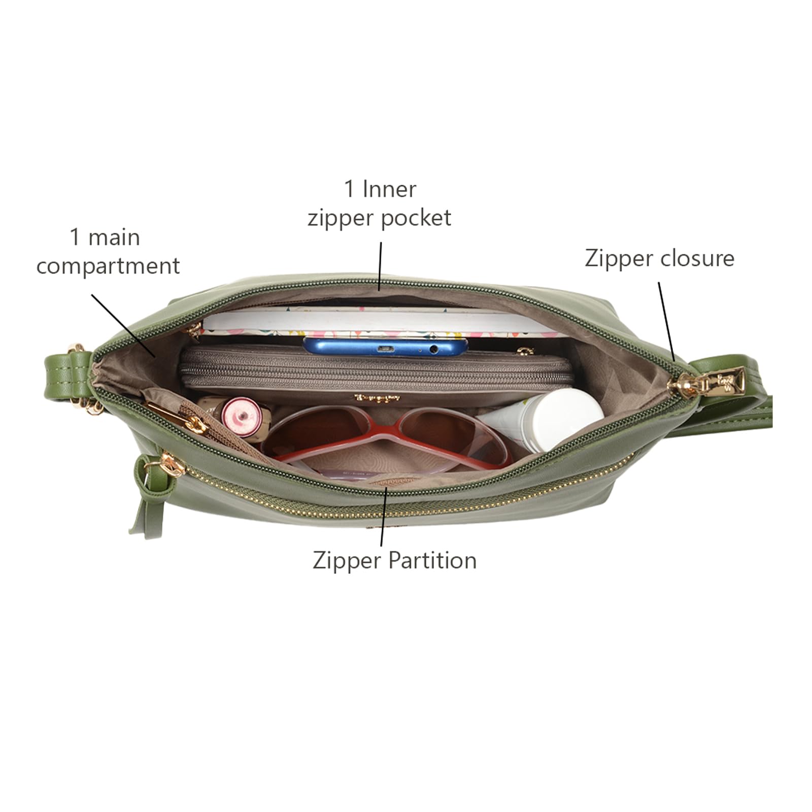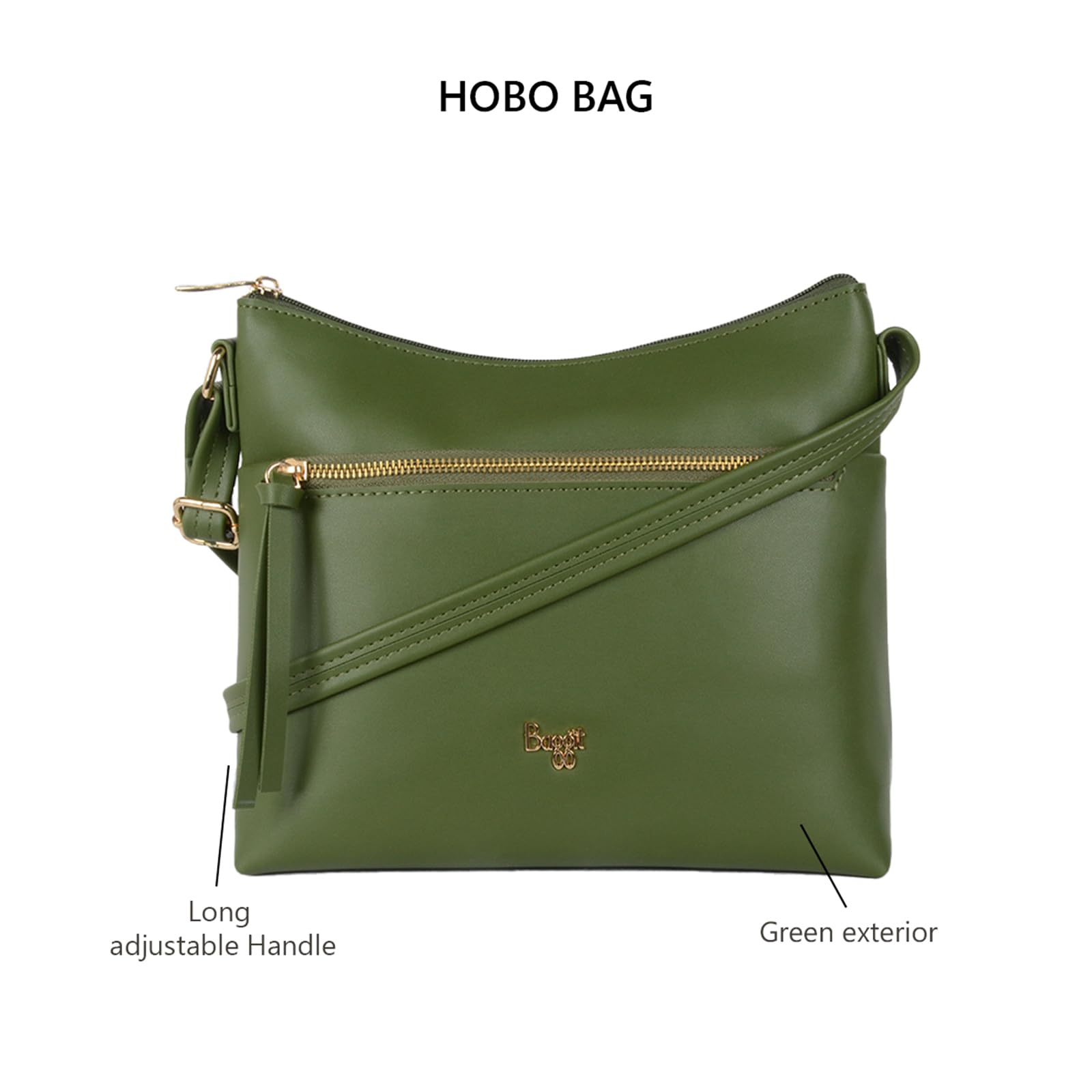 Baggit Women's Tilling Green Medium Sling Bag | Ladies Stylish Casual Cross Body Purse Handbag | Faux Leather | 6-Month Warranty | Cruelty-Free Material | Made in India
