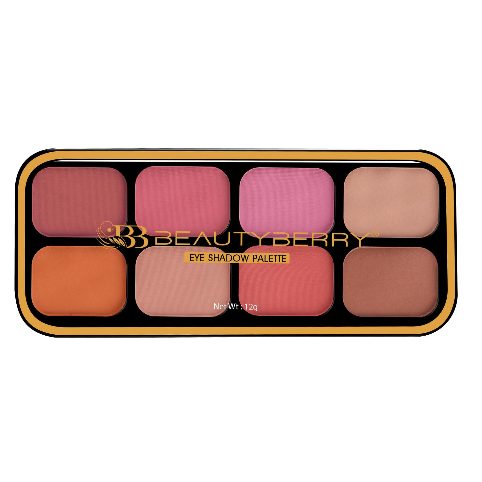 Beauty Berry Matte Eyeshadow & Blusher Palette | 8 Highly Pigmented & Blendable Shades | One Swipe Application, Lightweight & Long Wearing Eyeshadow Palette for Eye Makeup (Shade - 02)