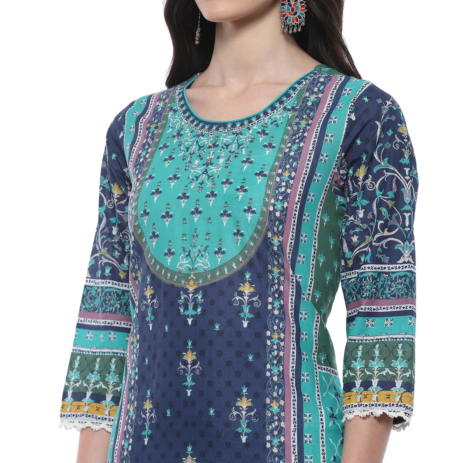 BIBA Cotton Women Printed Straight Fit Kurta Mix and Match(Assorted20018_Teal_34)