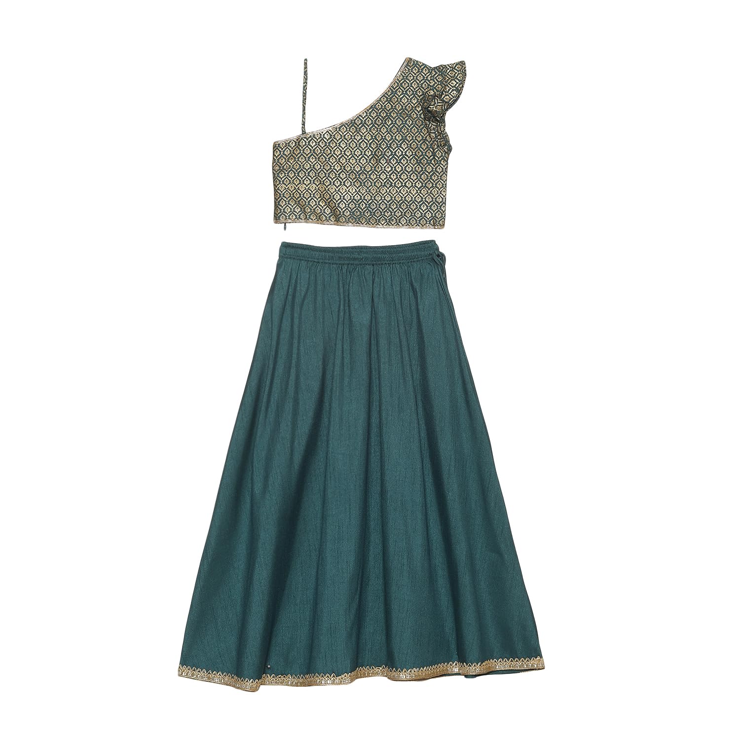 Biba Girls Black Art Silk Short Top Lehenga Set