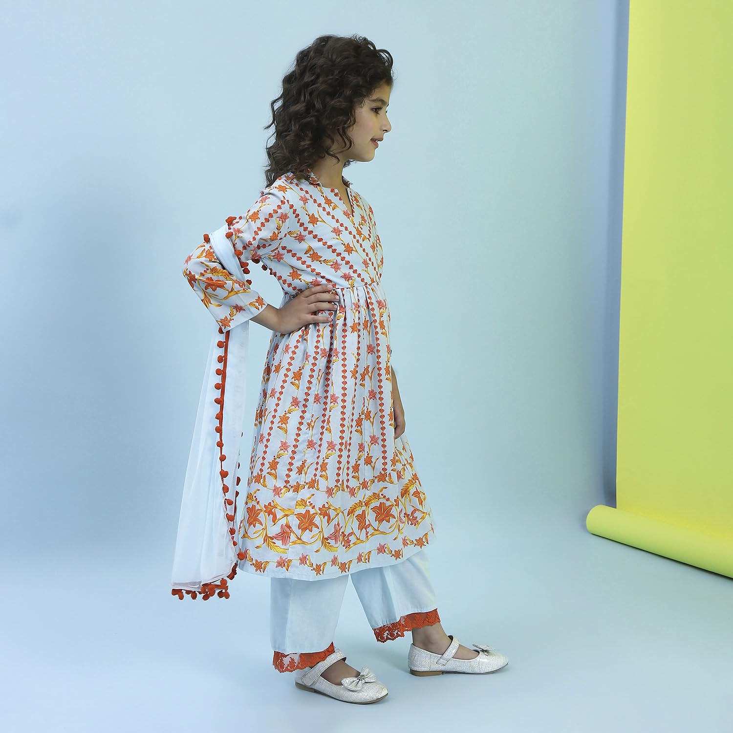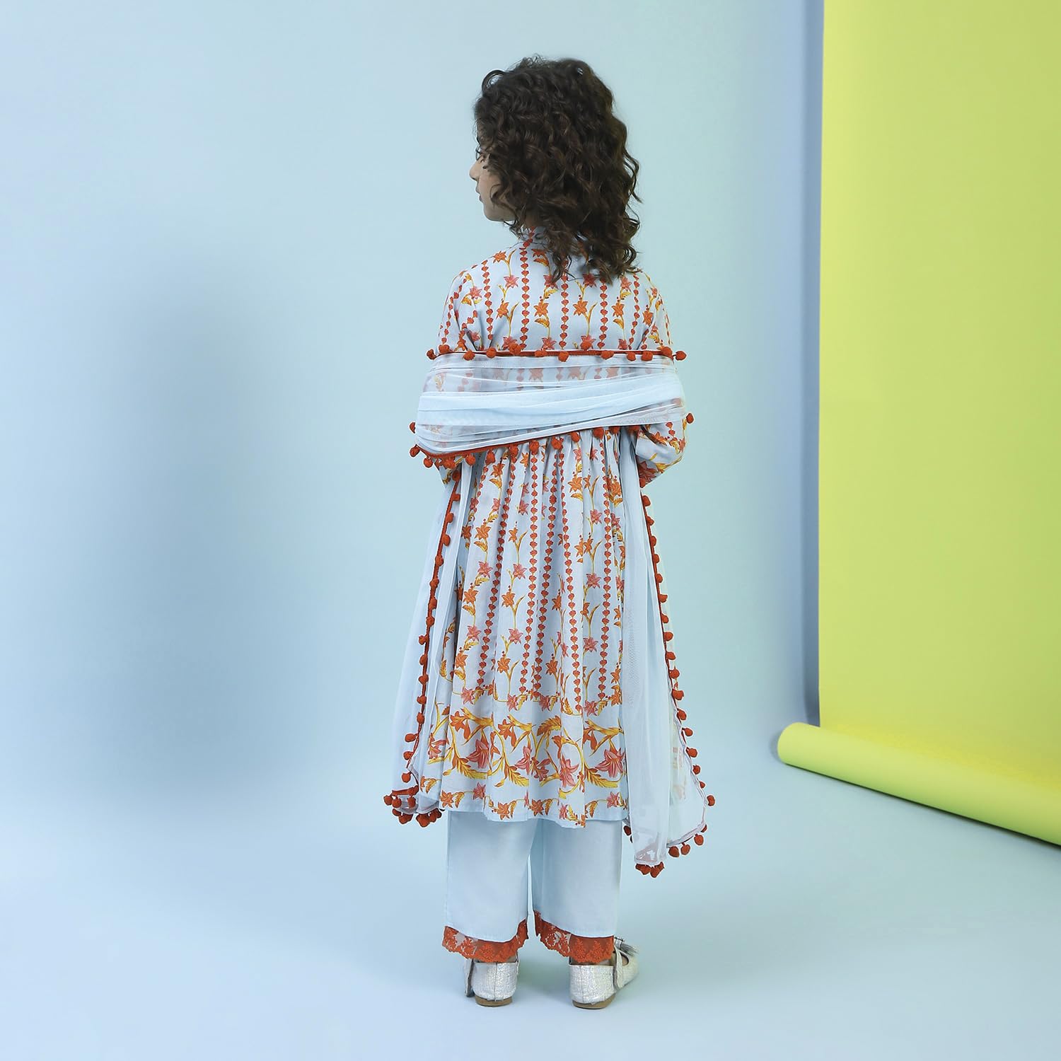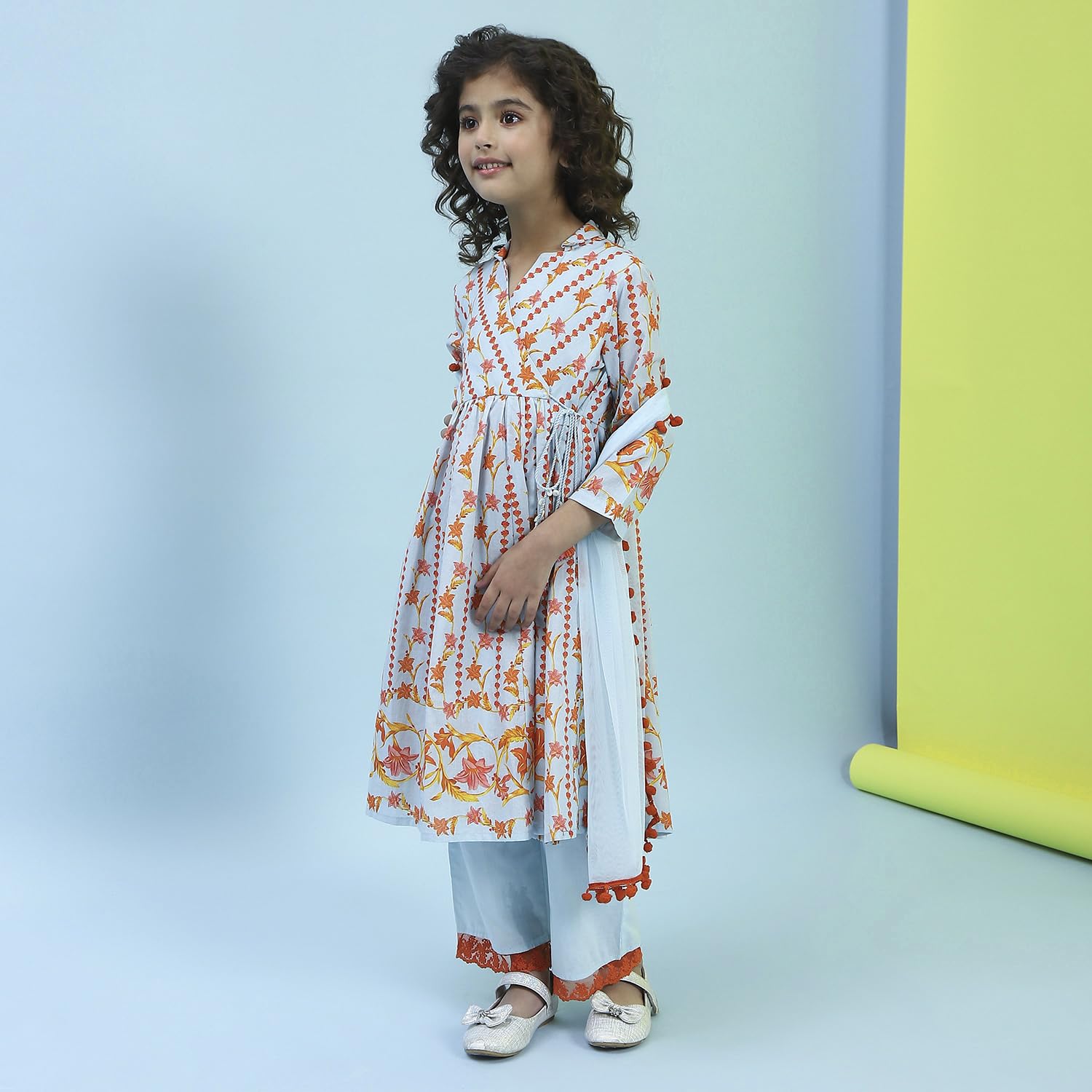 Biba Girl's Cotton Kurta, Bottom, Dupatta (KWBTNC6295SS25SKBLU_Sky Blue