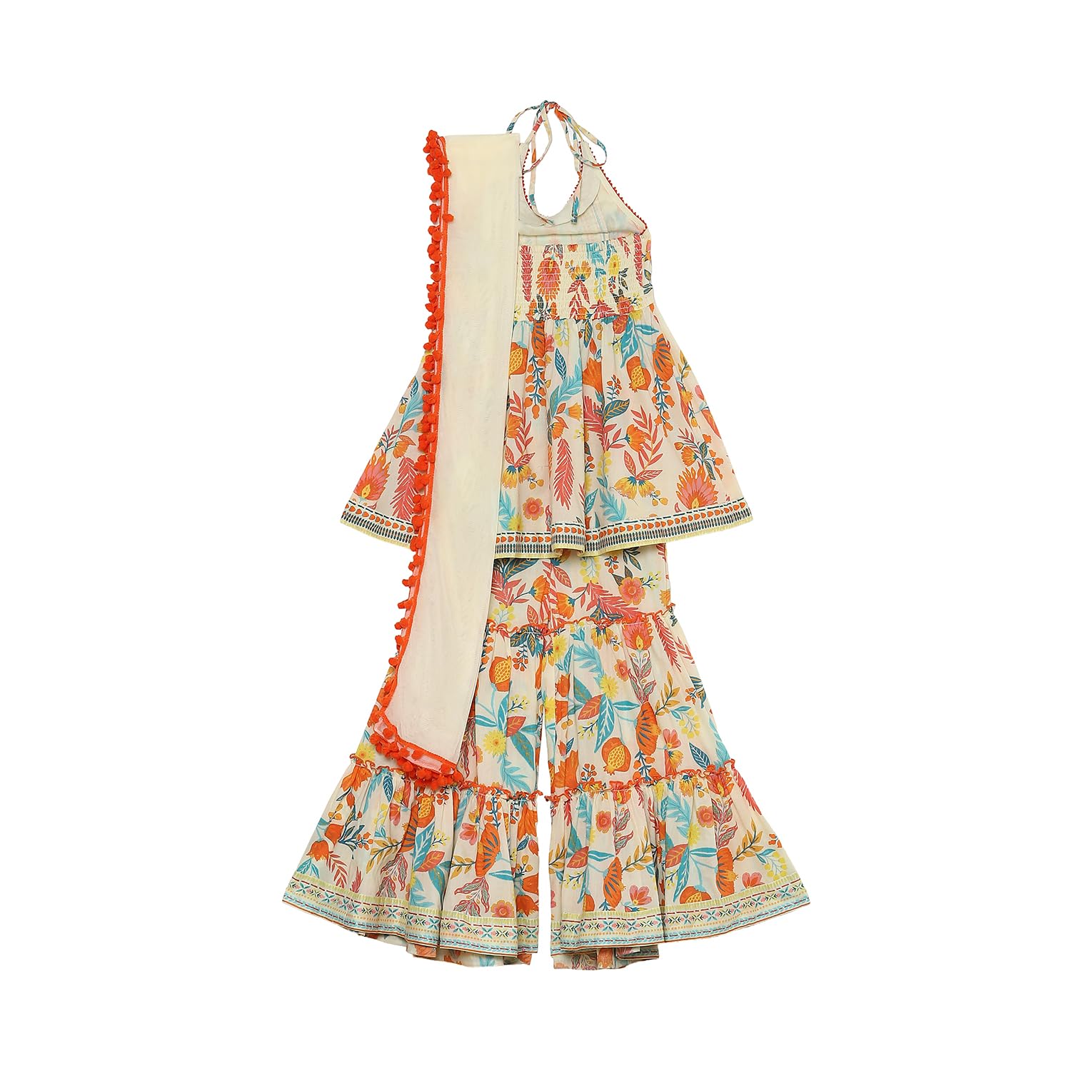 Biba Girl's Cotton Kurta, Bottom, Dupatta (KWSMCR6252SS25MLTI_Multicolor