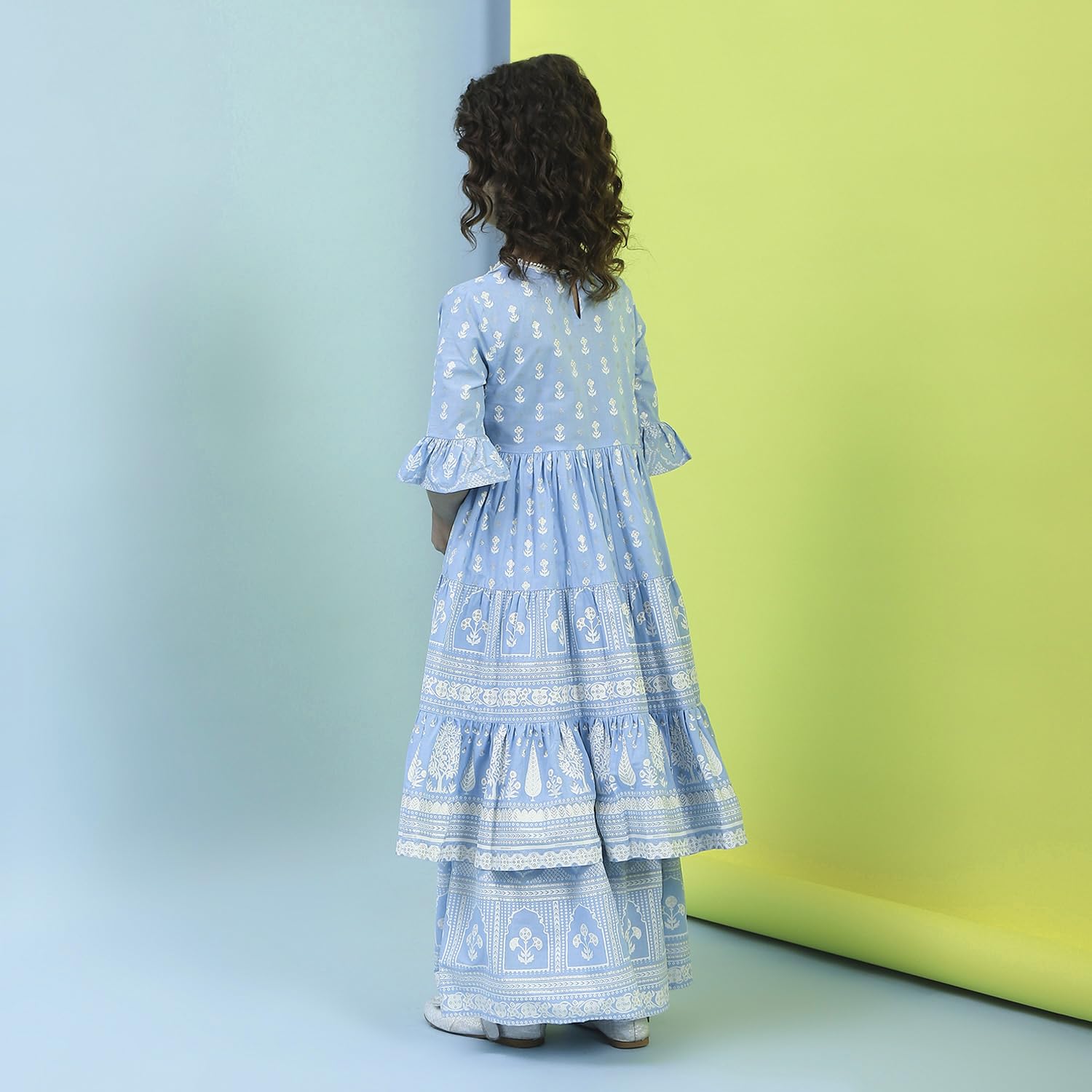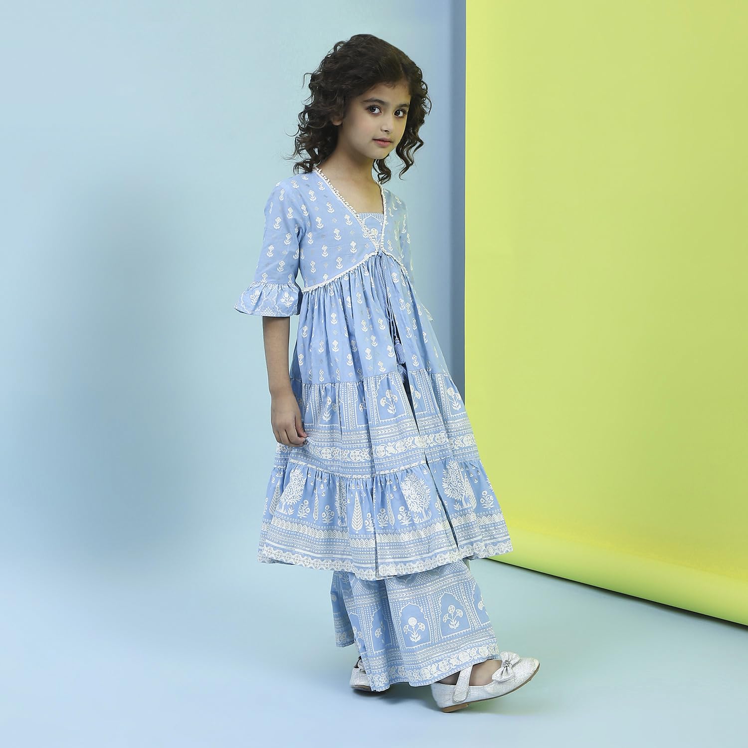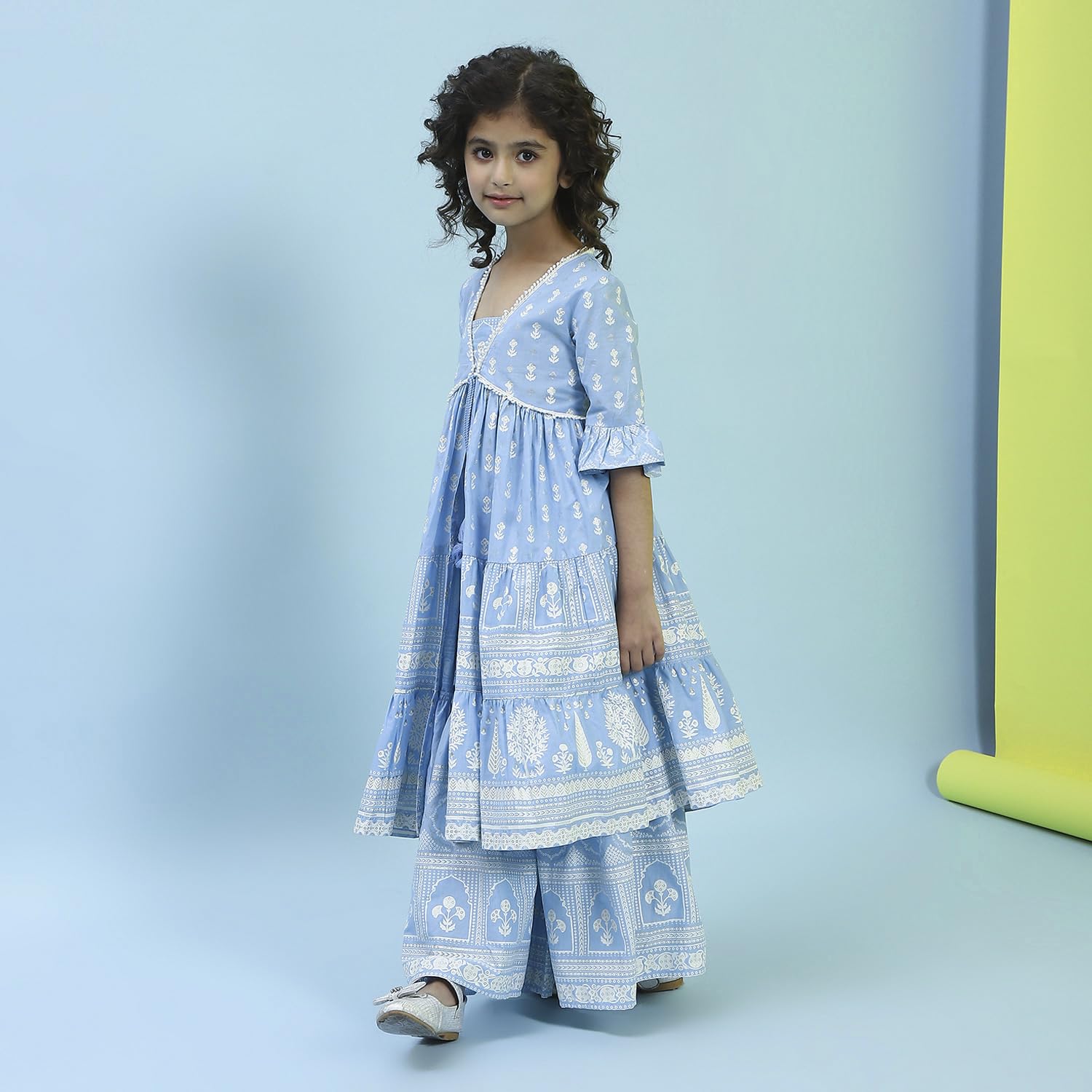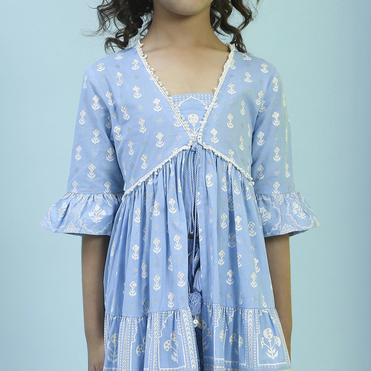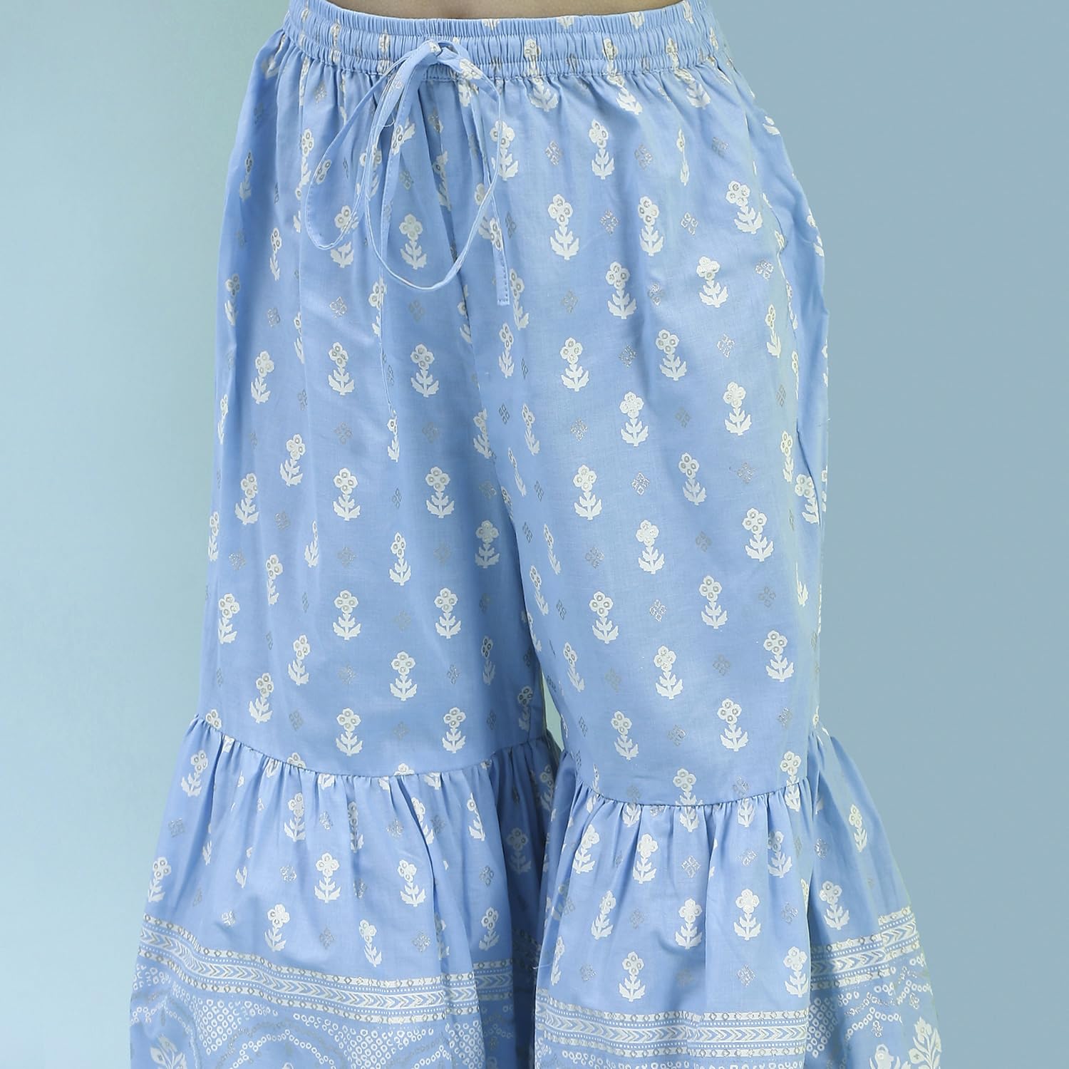 Biba Girl's Cotton Kurta, Bottom (KWFLPRT6425SS25POWBLU_Powder Blue