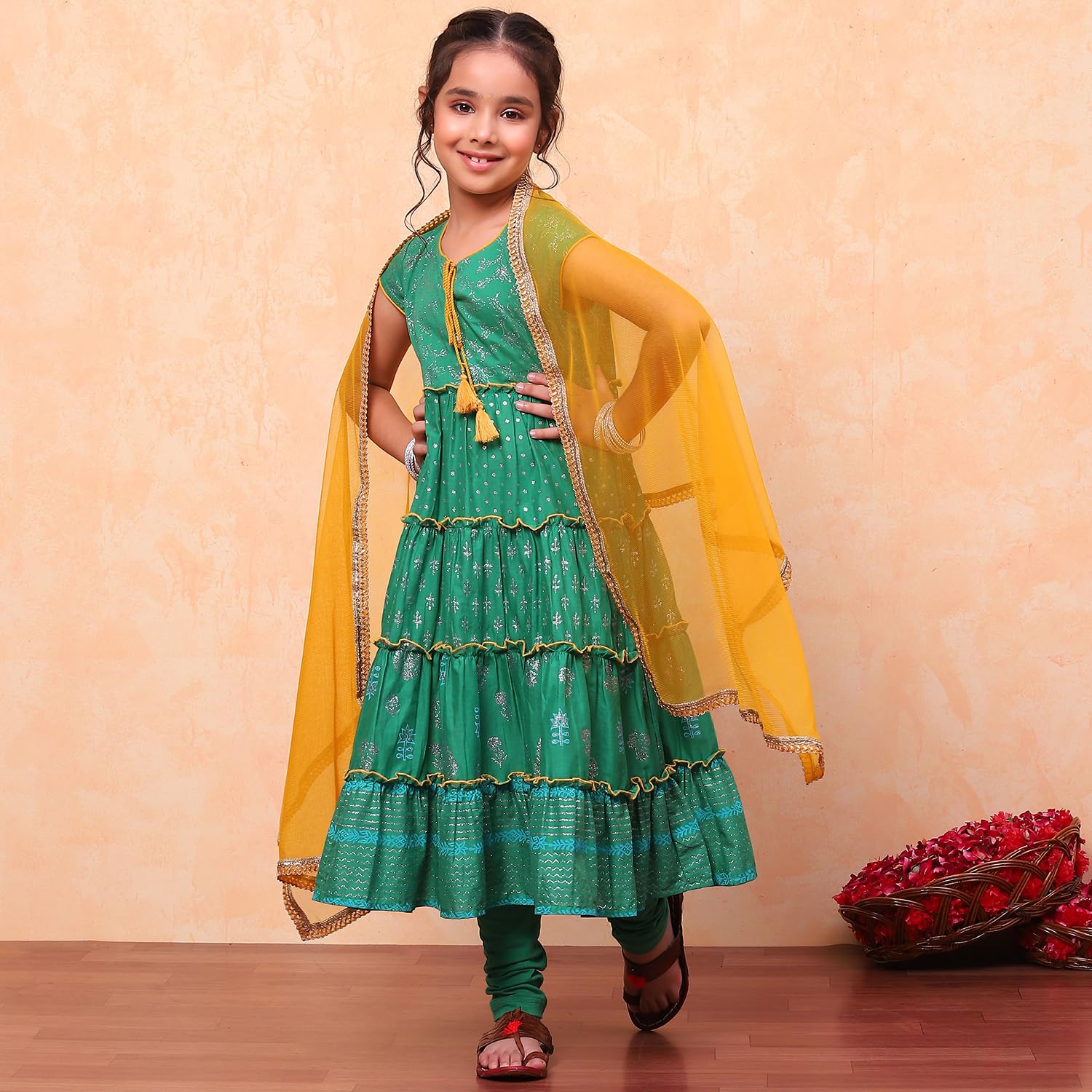 Biba Girl's Cotton Salwar Suit Sets (KW3526EAW24MEDIUM Green
