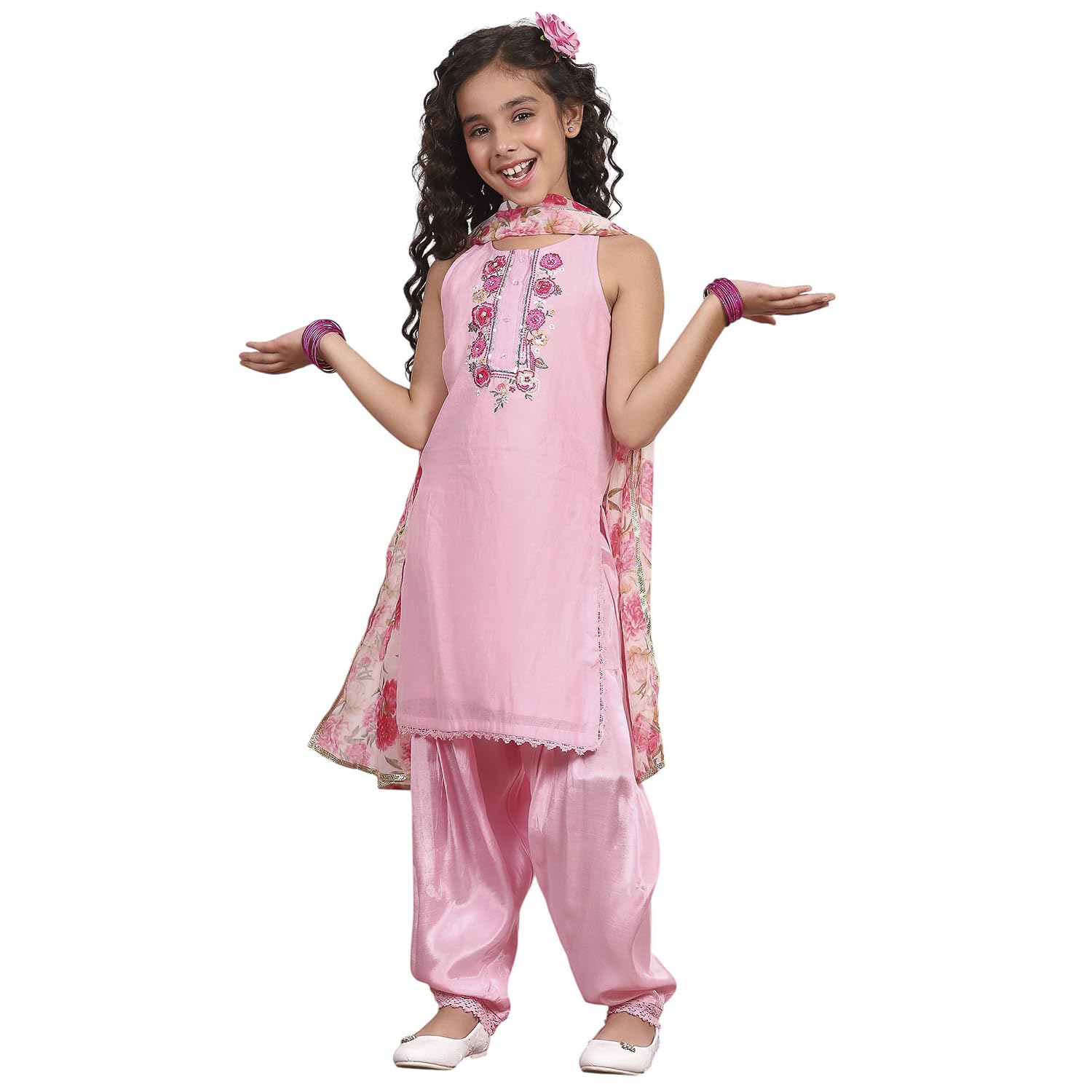 Biba Girl's Dark Pink Polyester Straight Solid Suit Set