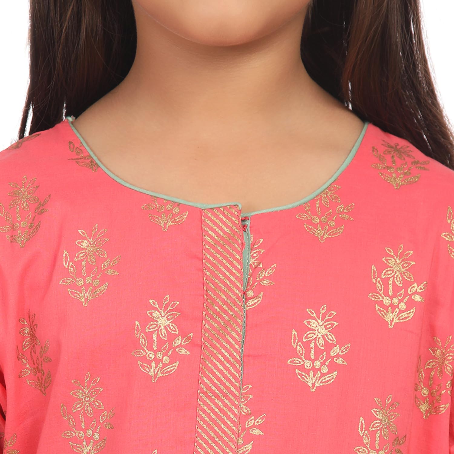 BIBA Girl's Ethnic Pink Cotton Kurta Set (Size_3)