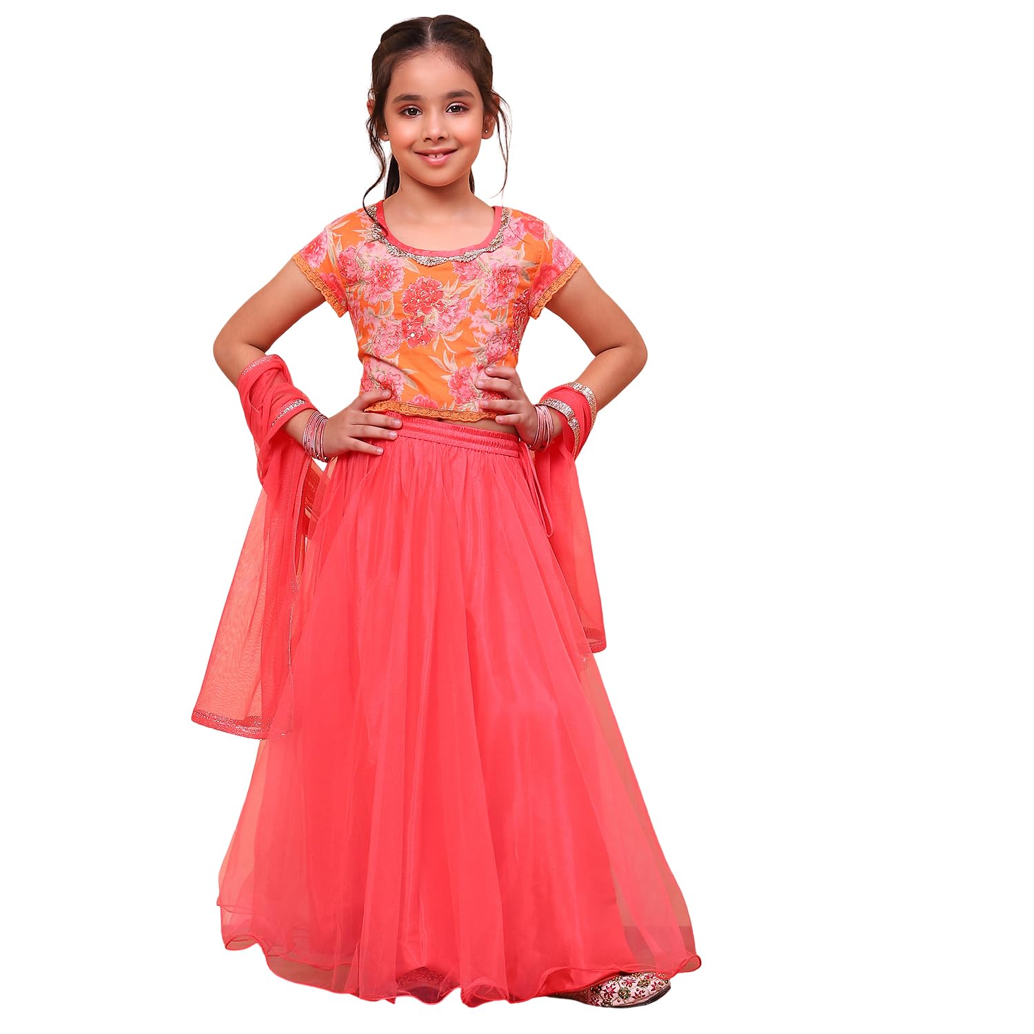 BIBA Girls Orange Flared Cotton Printed Lehenga Choli set