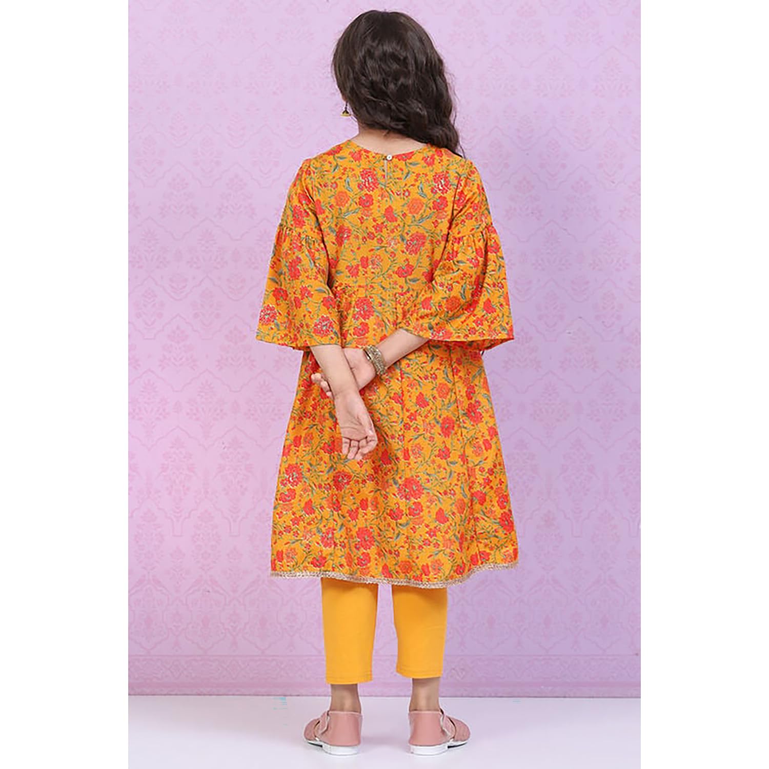 BIBA Girls Polyester Flared Printed Suit Set(KW5024E_5_Brown)