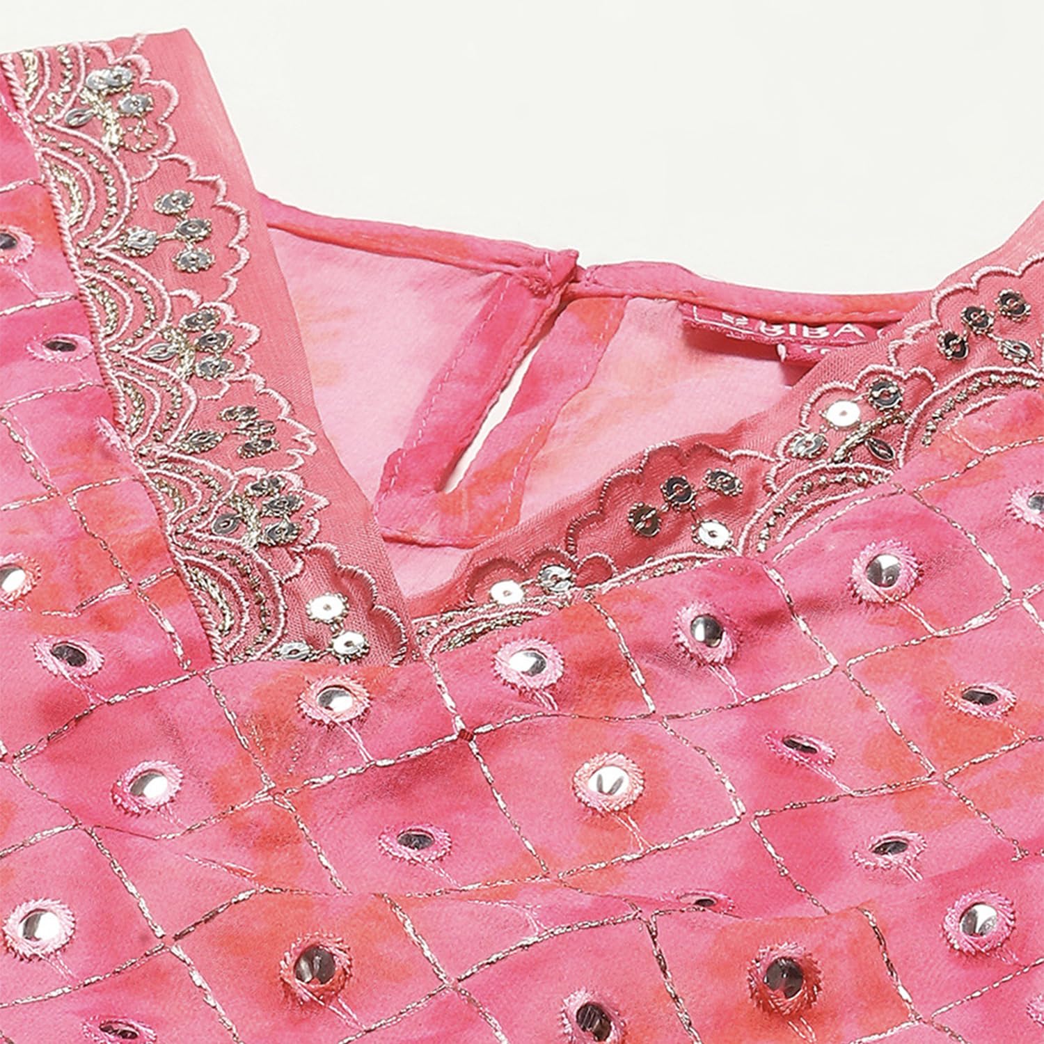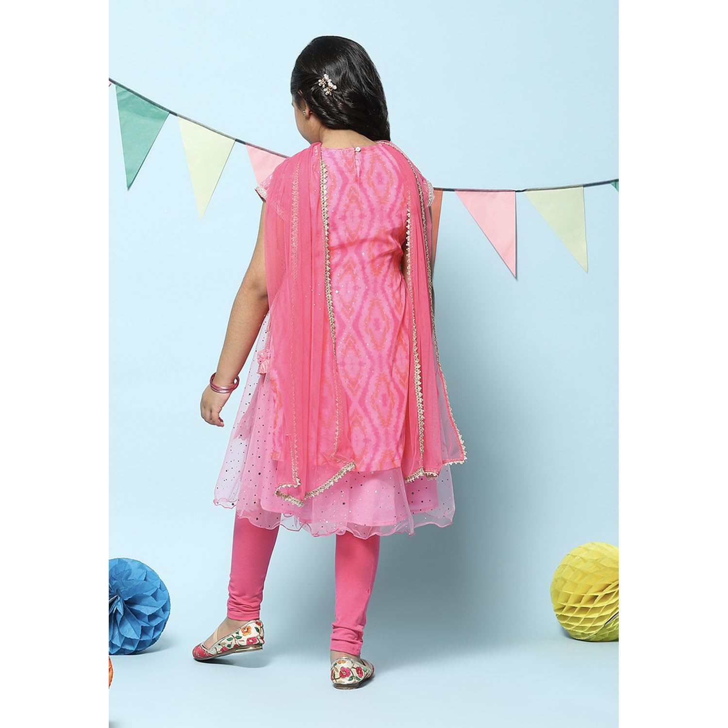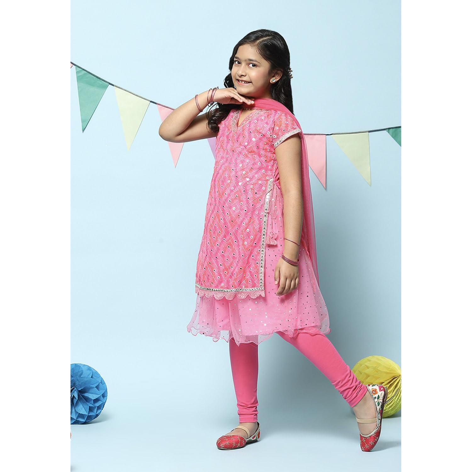 Biba Girls Pink Cotton Blend Layered Printed Suit Set