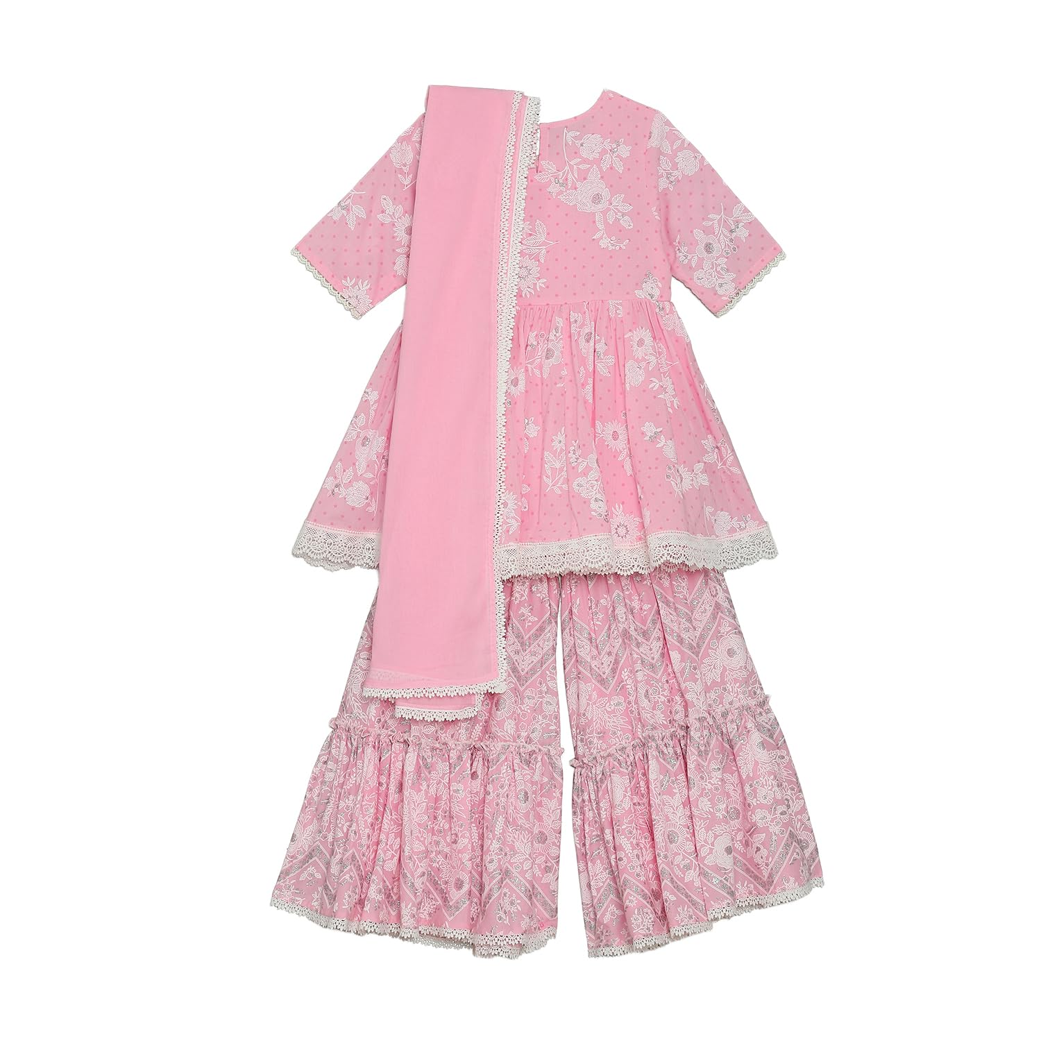 BIBA GIRLS PRINTED GATHERED KID(KWWHITE BLOOMS5764_PINK_15)