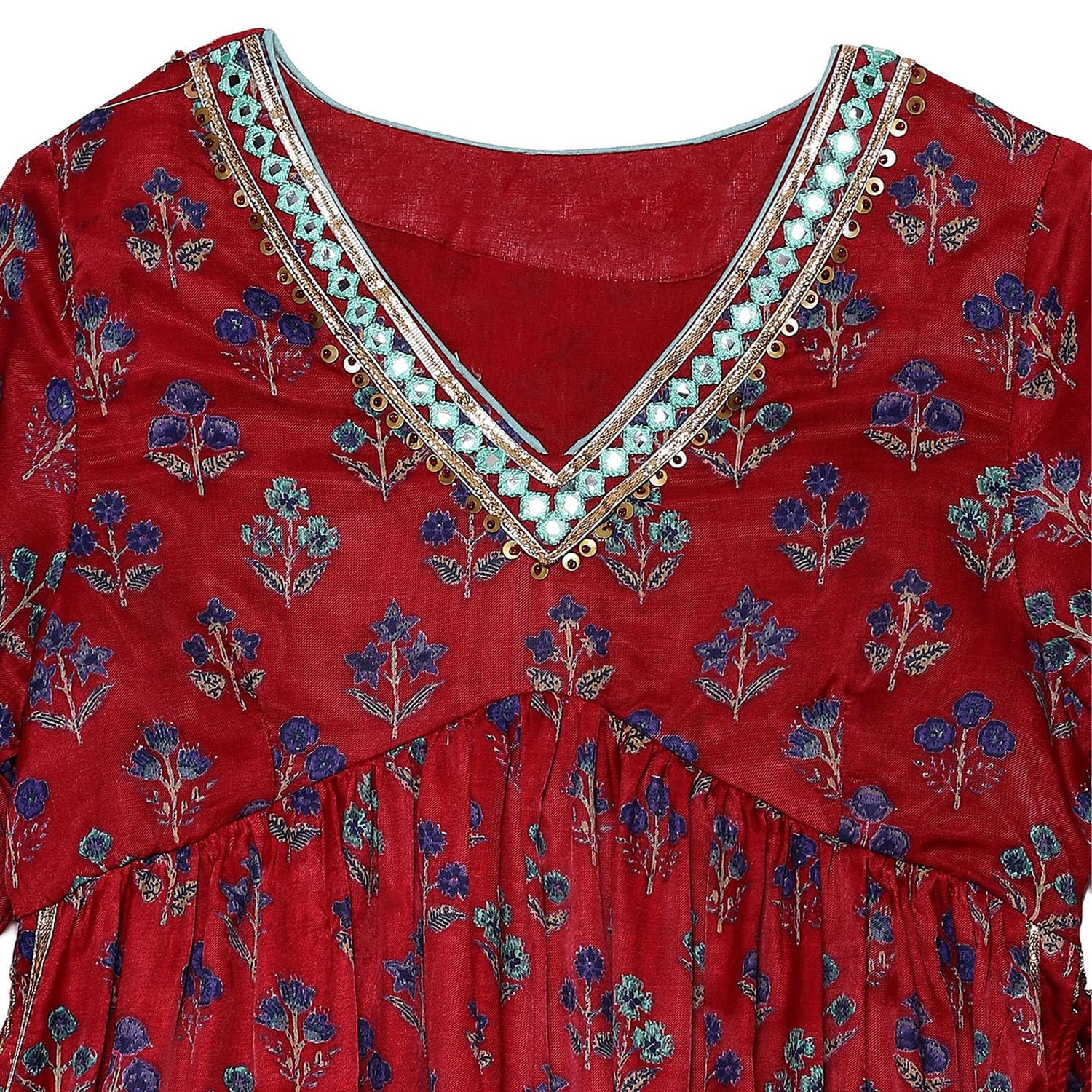 BIBA Girl's Rayon Kurta, Sharara, Dupatta (KWMNM6224AW24CHRYRD_Cherry Red