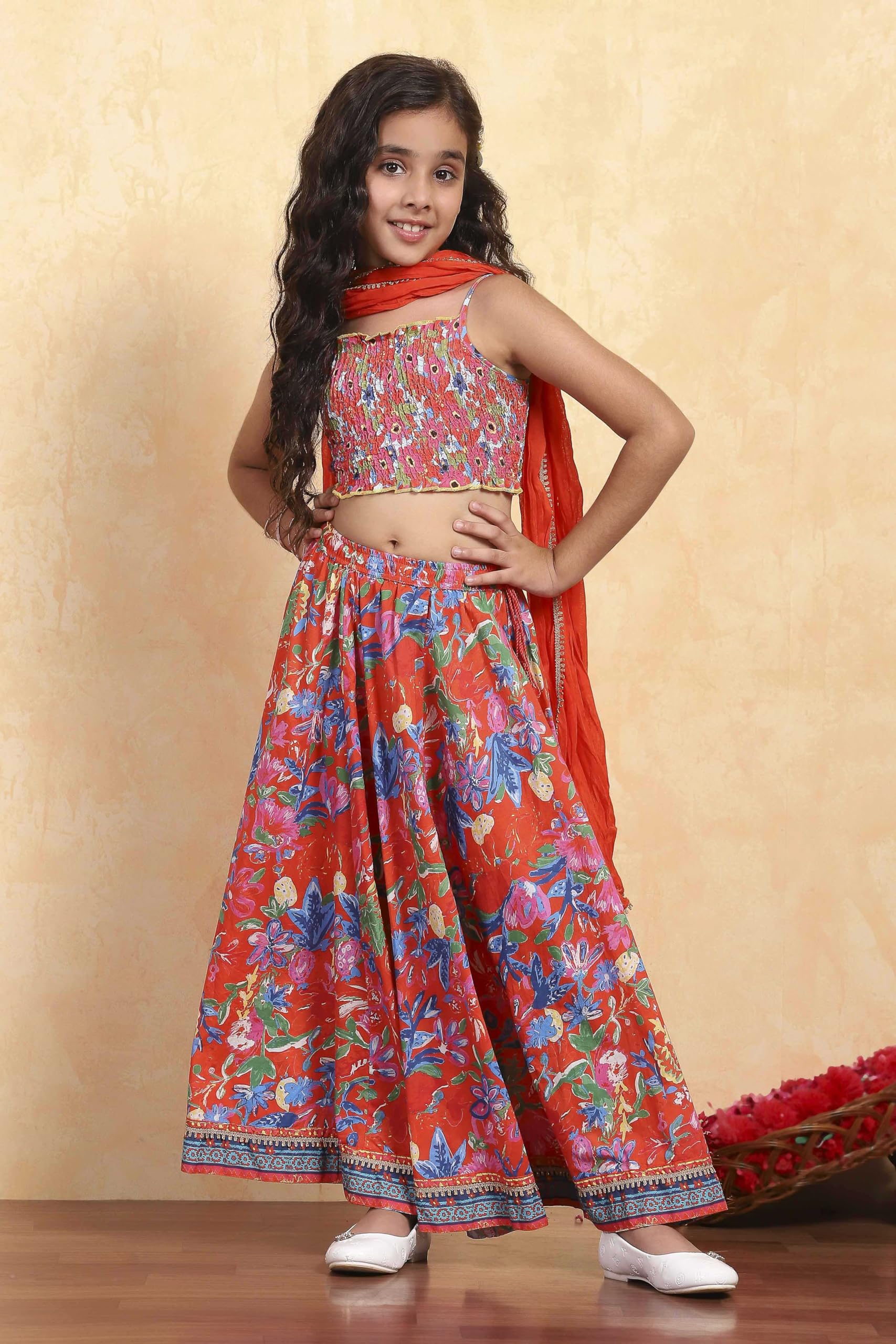 Biba Girl's Rayon Lehenga Set (KW5312SS25RED_Red_6-7Y)