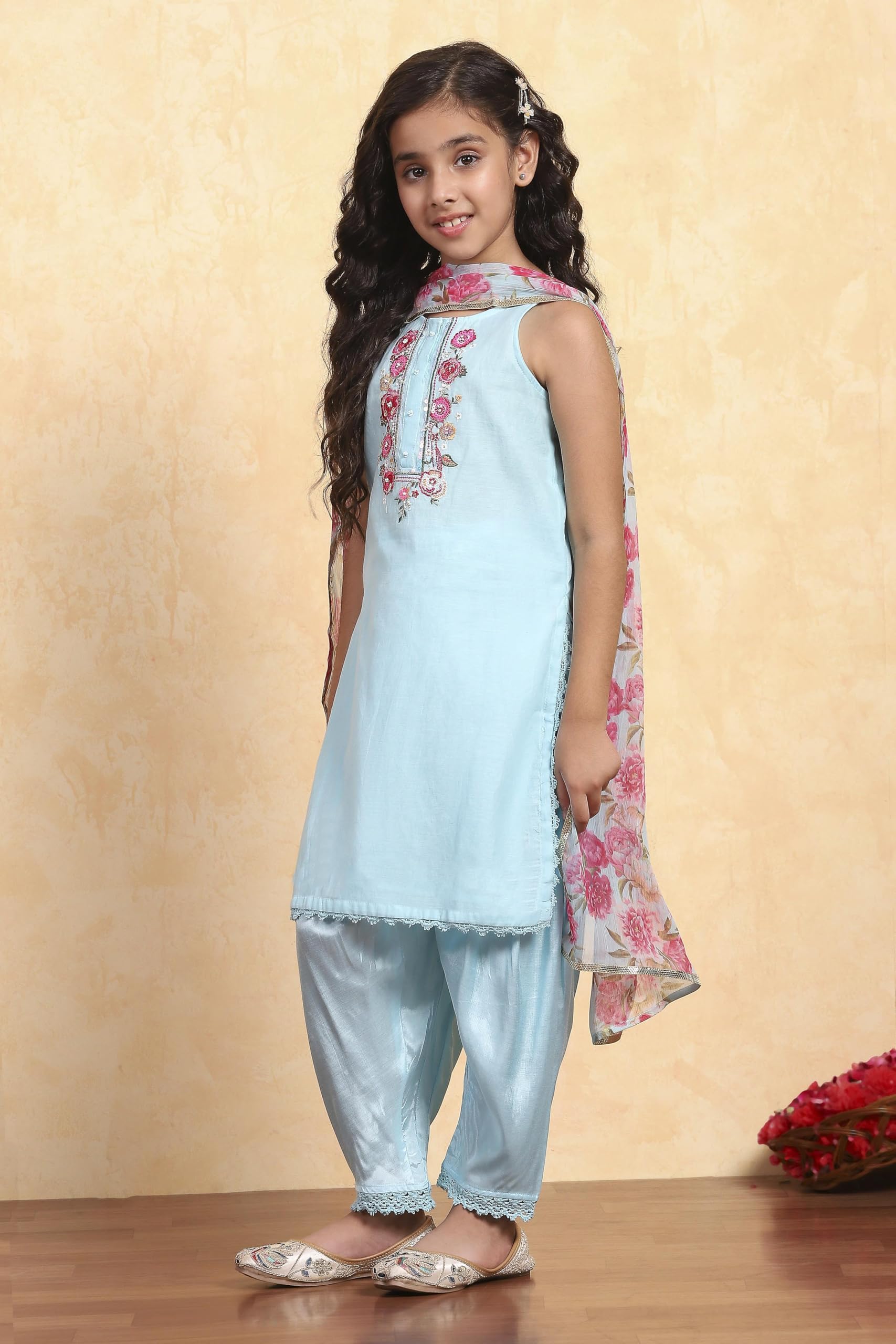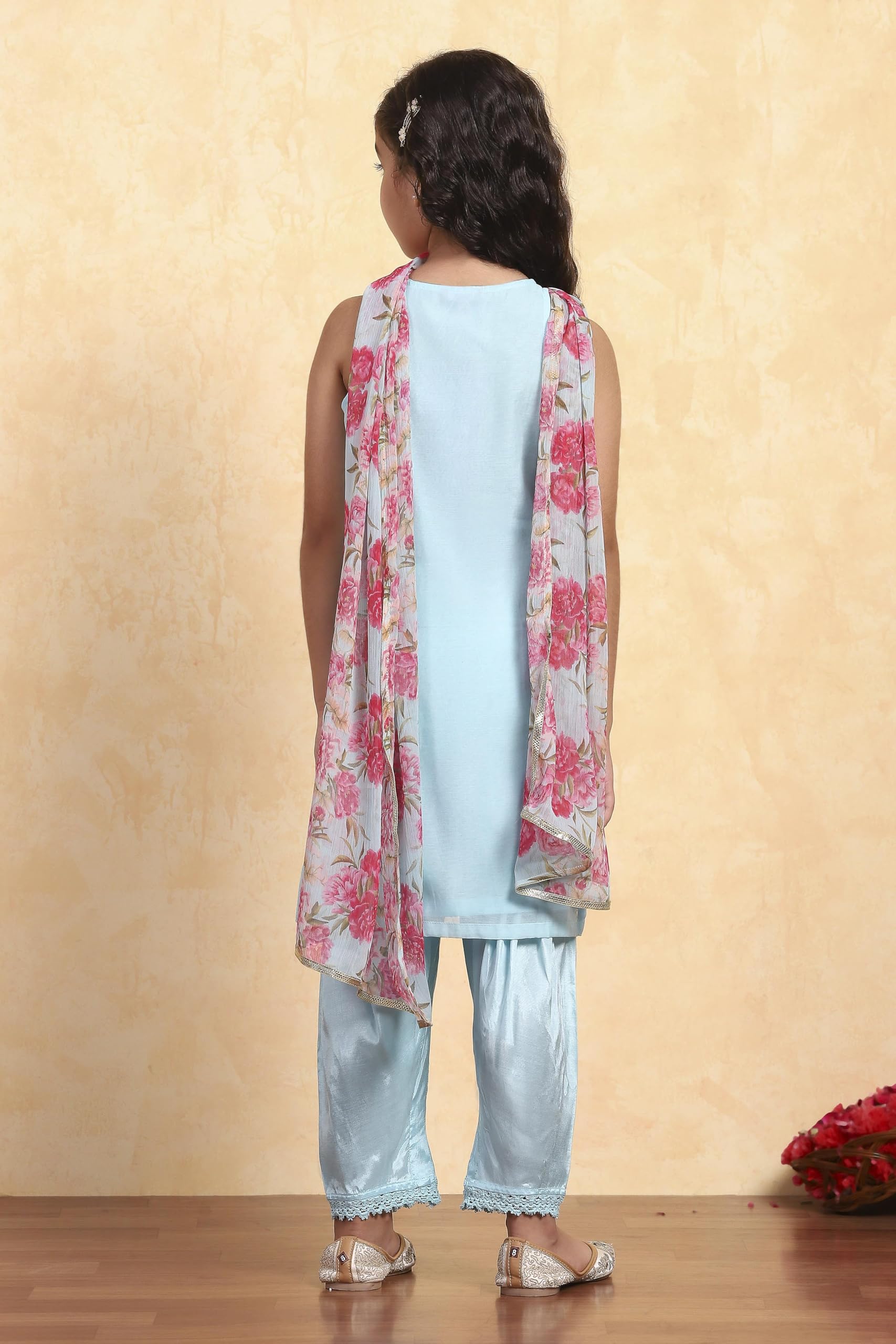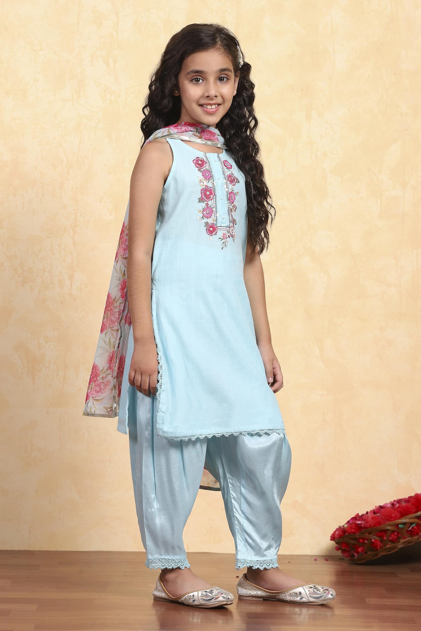Biba Girl's Sky Blue Polyester Straight Solid Suit Set