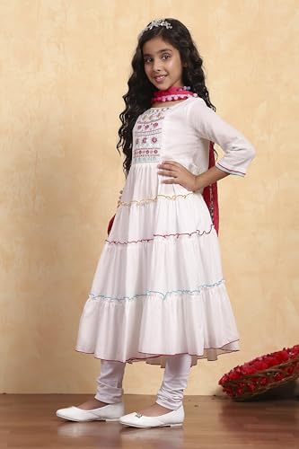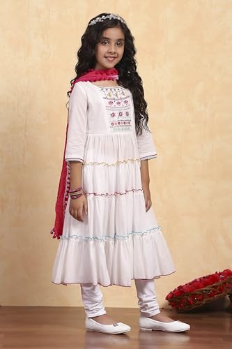 Biba Girl's White Cotton Tiered Solid Suit Set