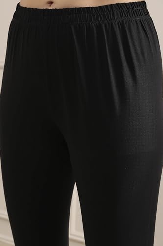 Biba Women Black Polyester Blend Solid Anarkali Suit Set_32