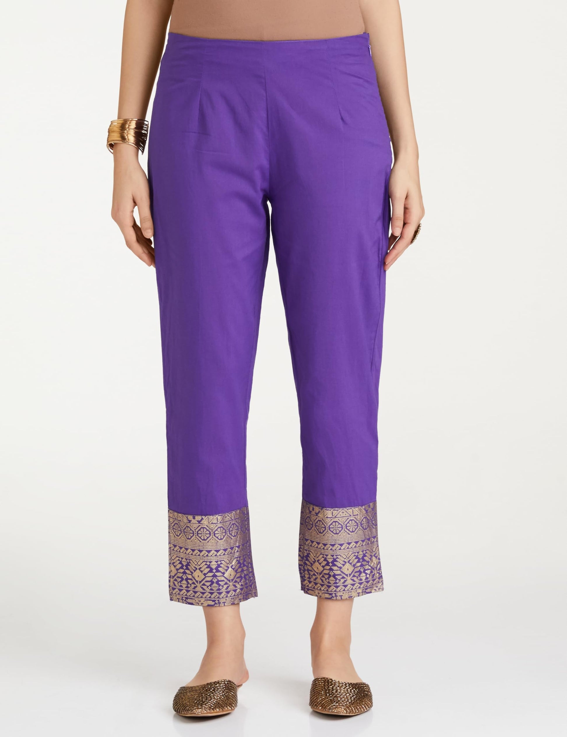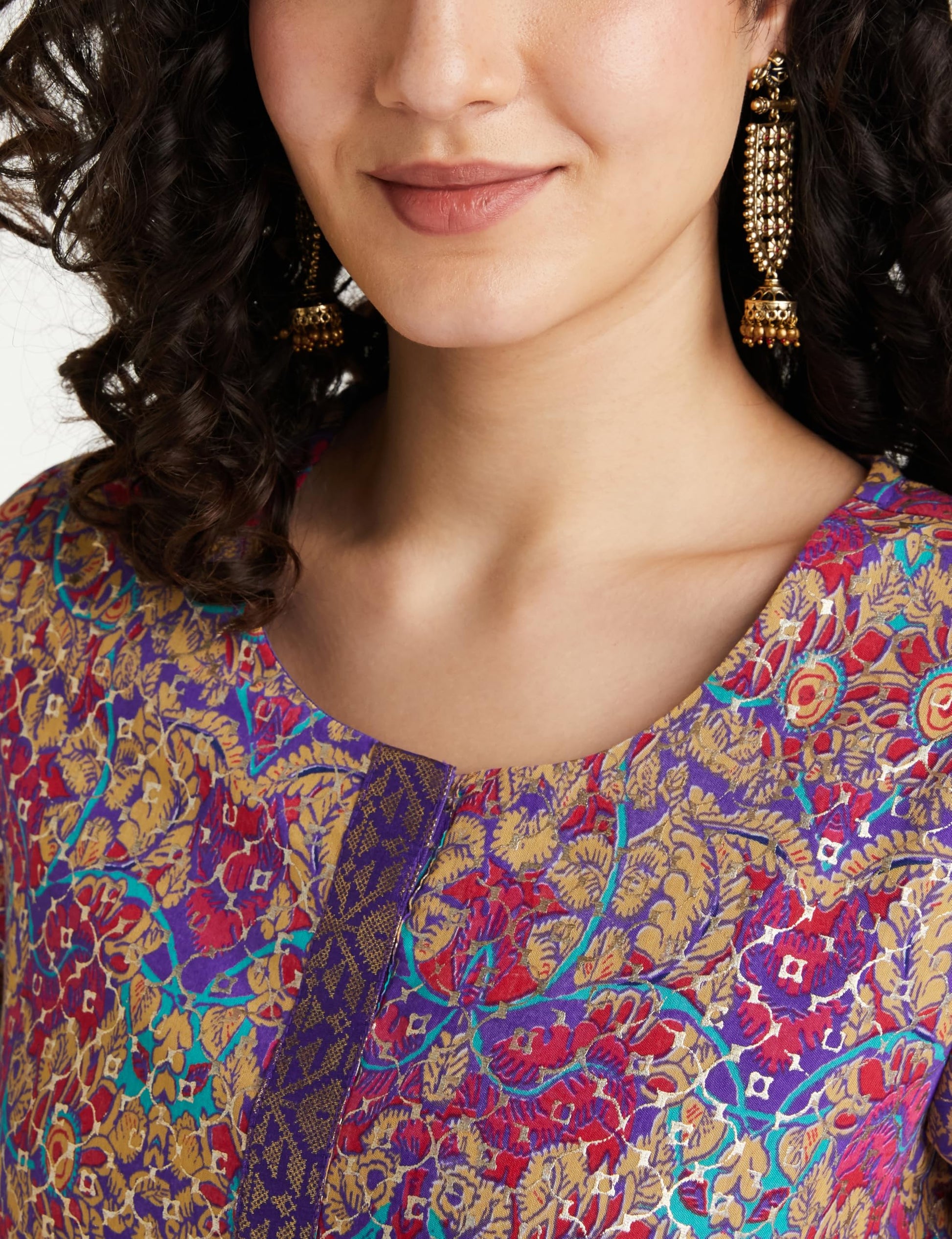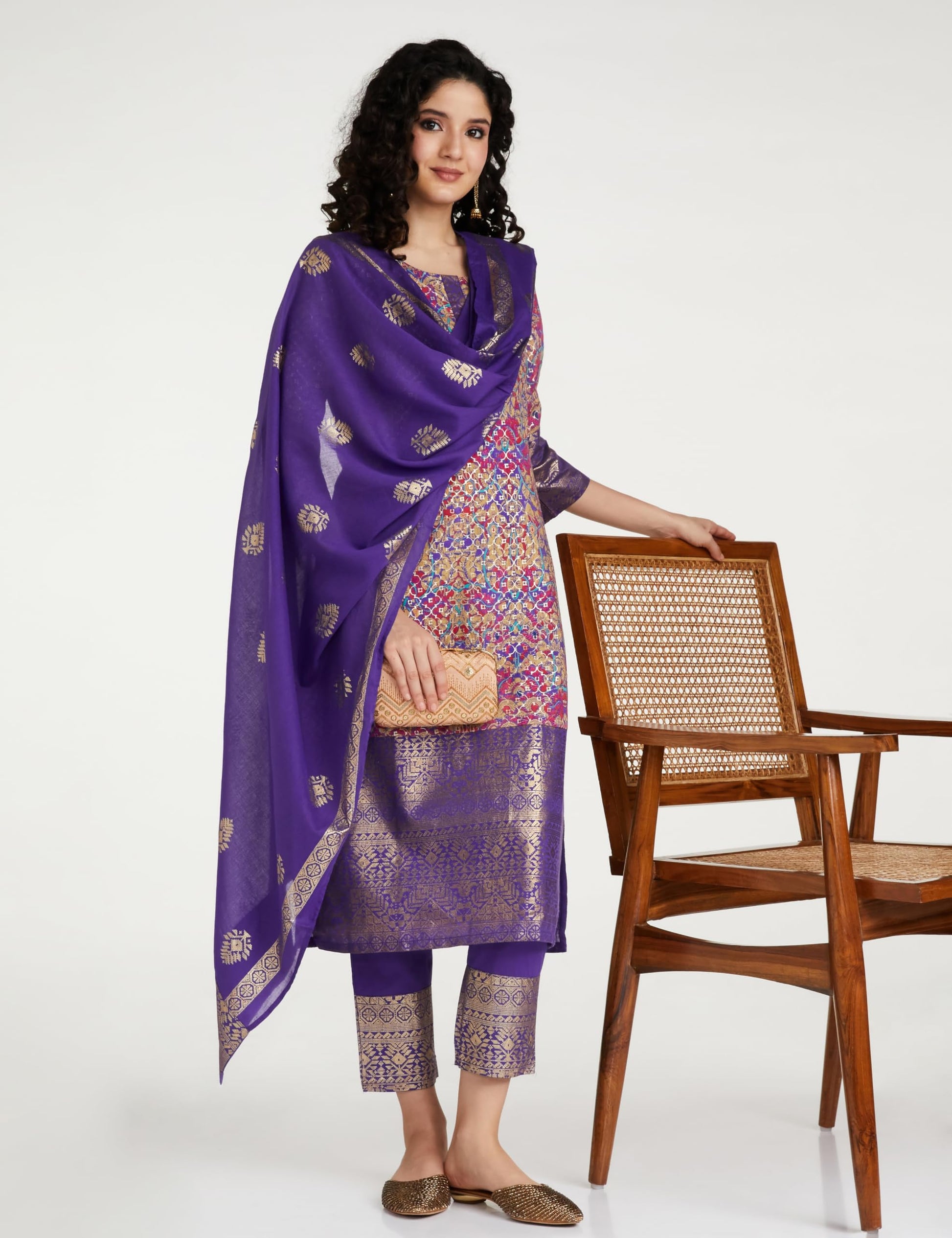 BIBA Women Cotton Blend Printed Straight Salwar Kurta Dupatta(Skdassorted7566E_Purple_36)