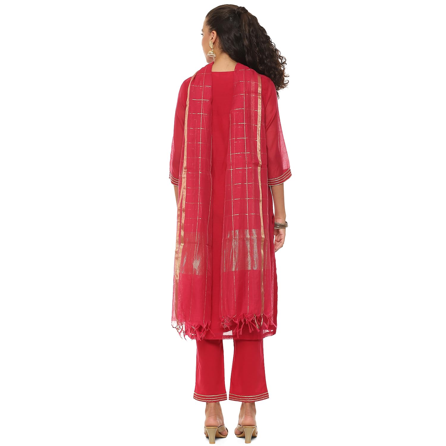 BIBA Women EMBROIDRED Straight SALWAR KURTA DUPATTA(SKDASSORTED8907_FUCHSIA_32)
