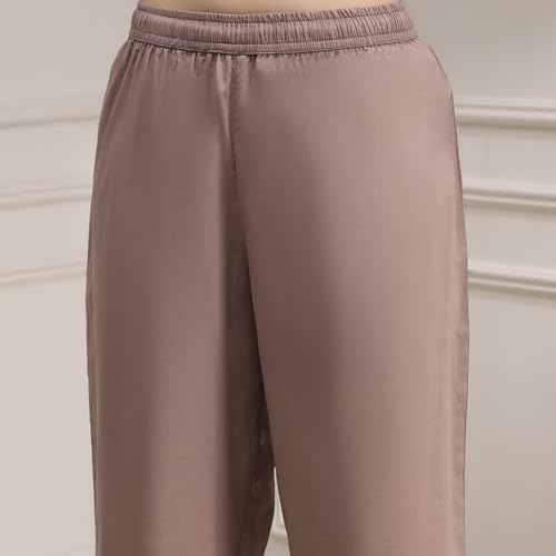 Biba Women Mud Brown Cotton Anarkali Printed Kurta Set_42