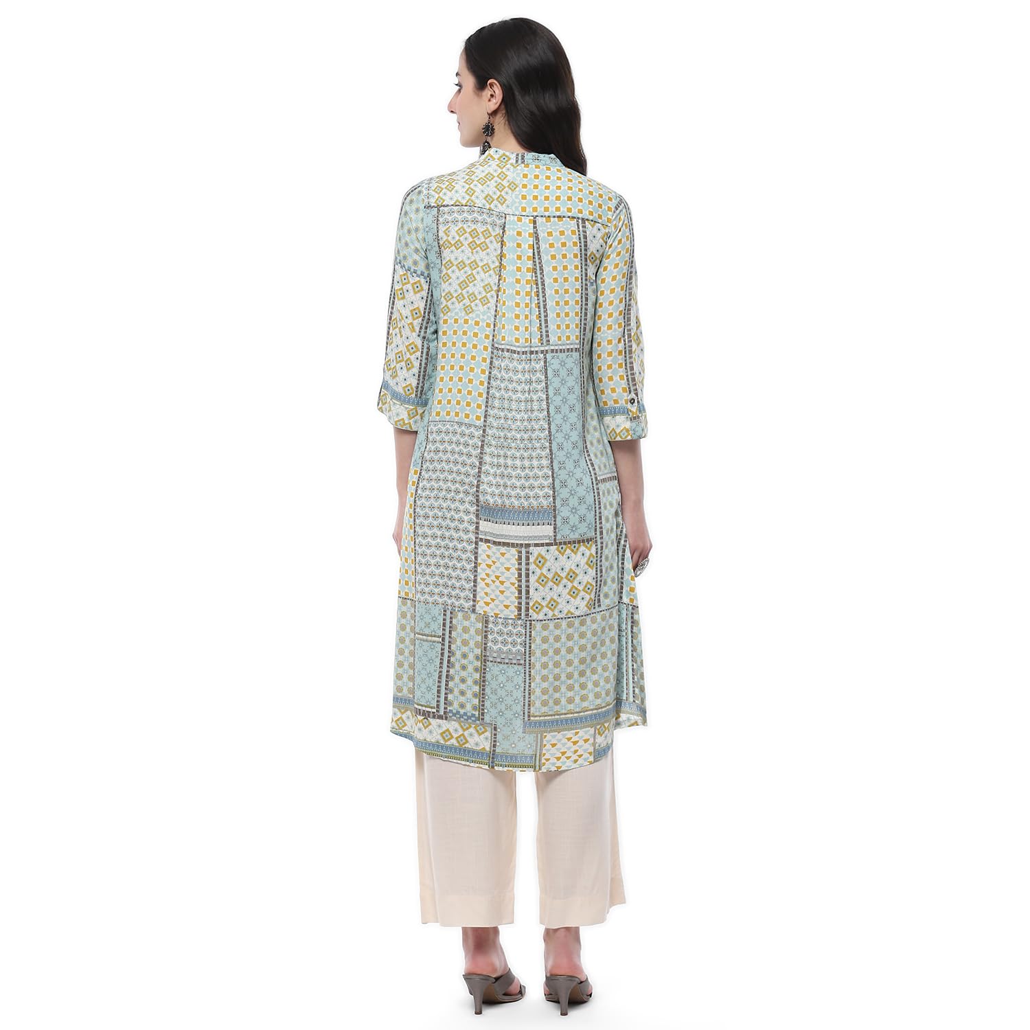 BIBA Women Rayon Printed Straight Regular Fit Kurta Mix and Match(Azul Collection20485_Teal_36)