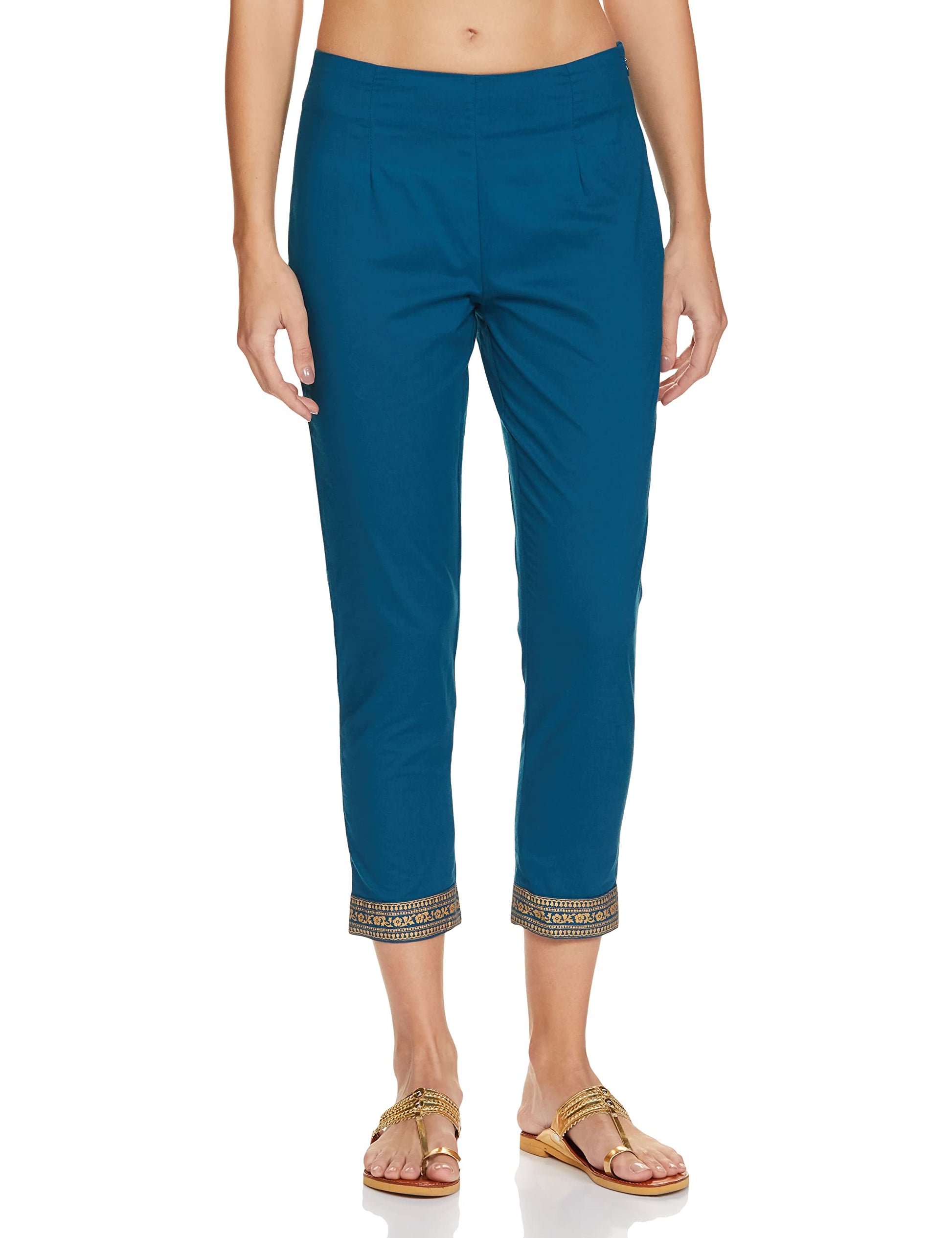 BIBA WOMEN SOLID; EMBROIDRED NARROW SALWAR KURTA DUPATTA(SKDASSORTED7700_TEAL_38)