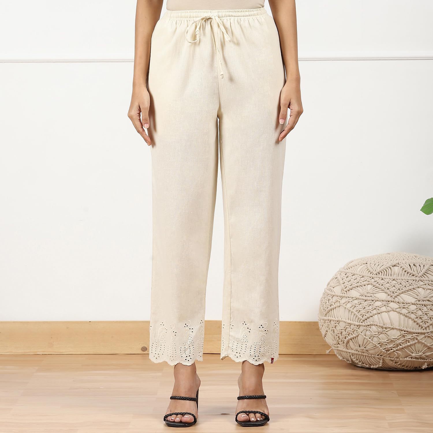 BIBA Women Solid Straight Mid Rise Bottom WEAR(Bottom W16946_Natural_XXL),Pink